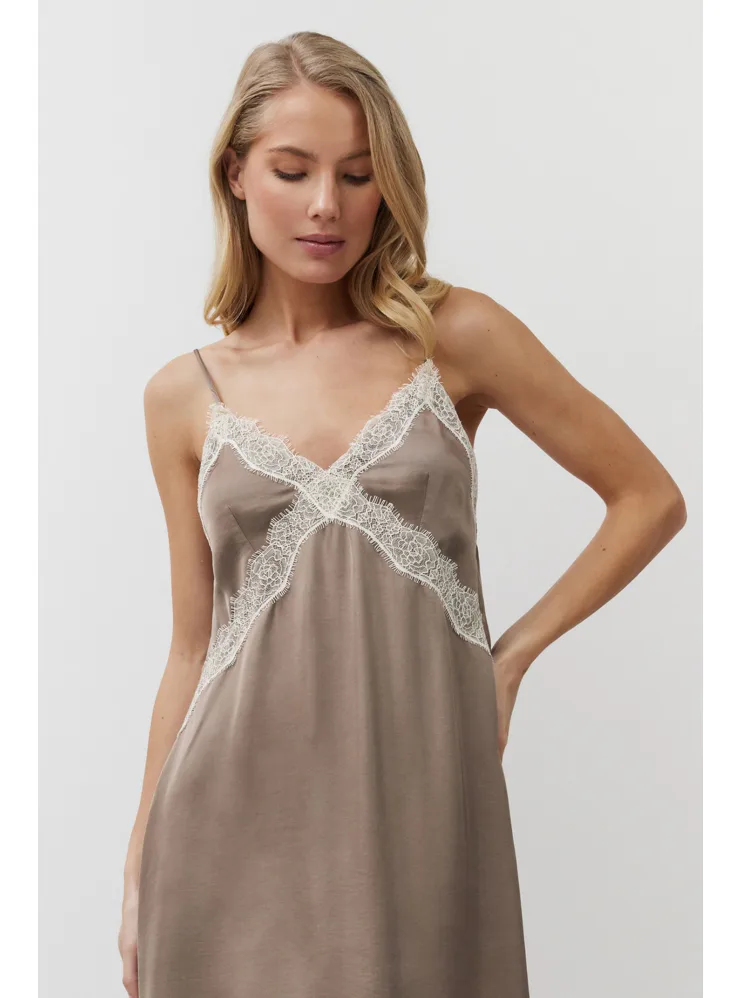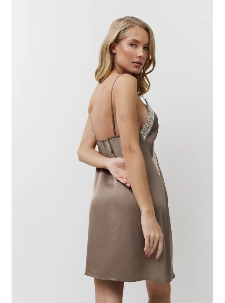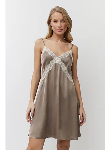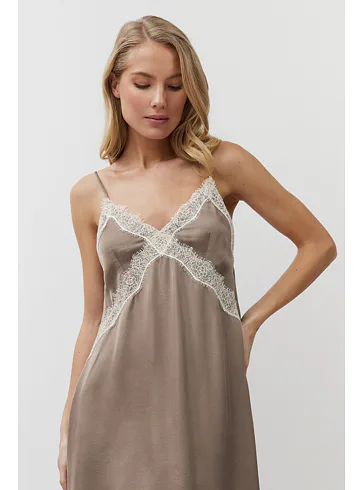 Viskózová dámska nočná košieľka v hnedej farbe