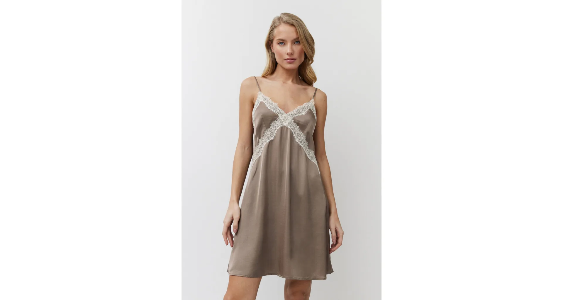 Nechajte sa rozmaznávať, atraktívna košieľka na spanie vytvorí hladkú siluetu a dodá vašim krivkám nádych zmyselnosti. Košieľku zdobí rafinovaná čipka a nastaviteľné ramienka zaisťujú pohodlné nosenie. Košeľa má dĺžku ľahko nad kolená.