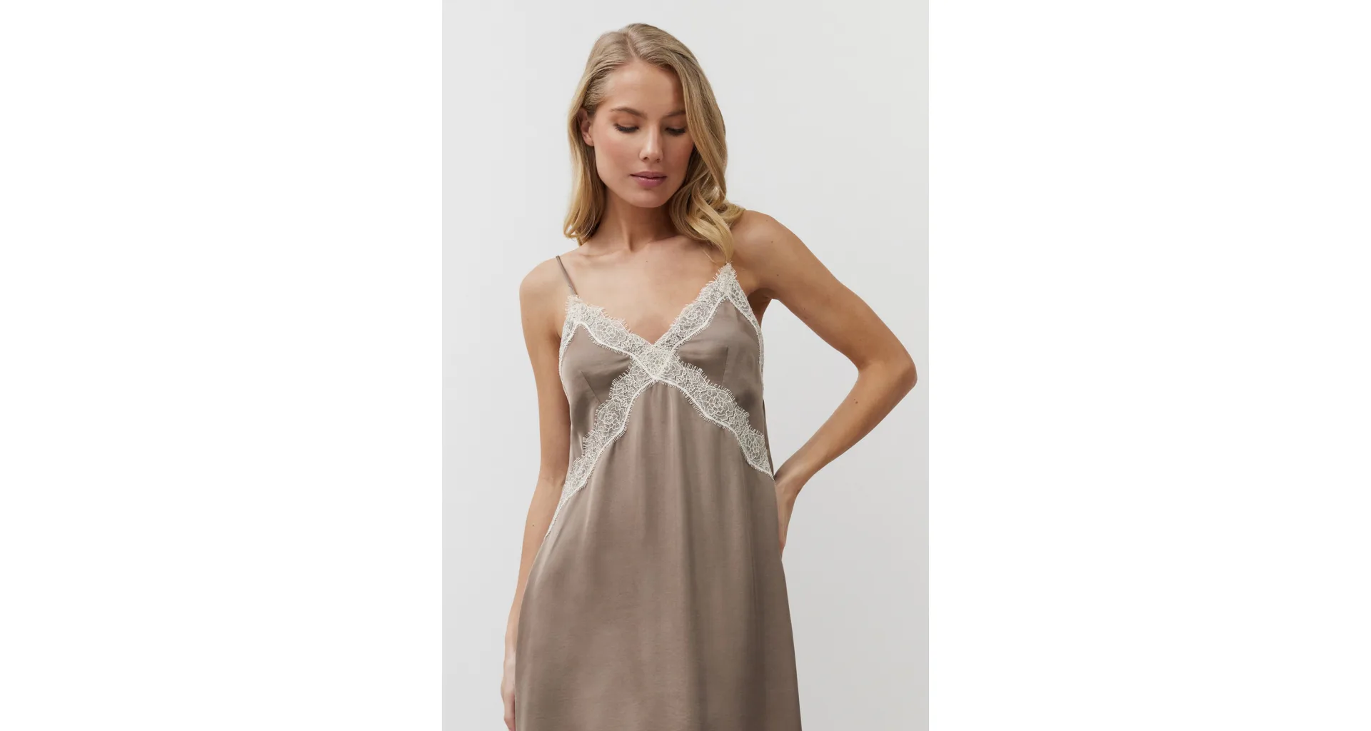 Ľahká nočná košieľka je vyrobená z viskózy, ktorá vyniká svojou hebkosťou, mäkkosťou a priedušnosťou. Zaujme sexi výstrihom v tvare V a jemným leskom. Ideálna voľba nielen na spanie, ale aj na pokojné večery strávené v pohodlí domova. K dokonalosti už chýba len župan, ktorý je možné zaobstarať v rovnakom prevedení.