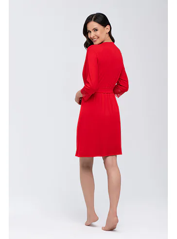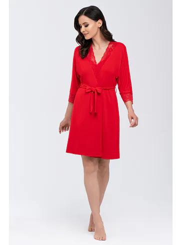 Dámsky župan s čipkou v červenej farbe