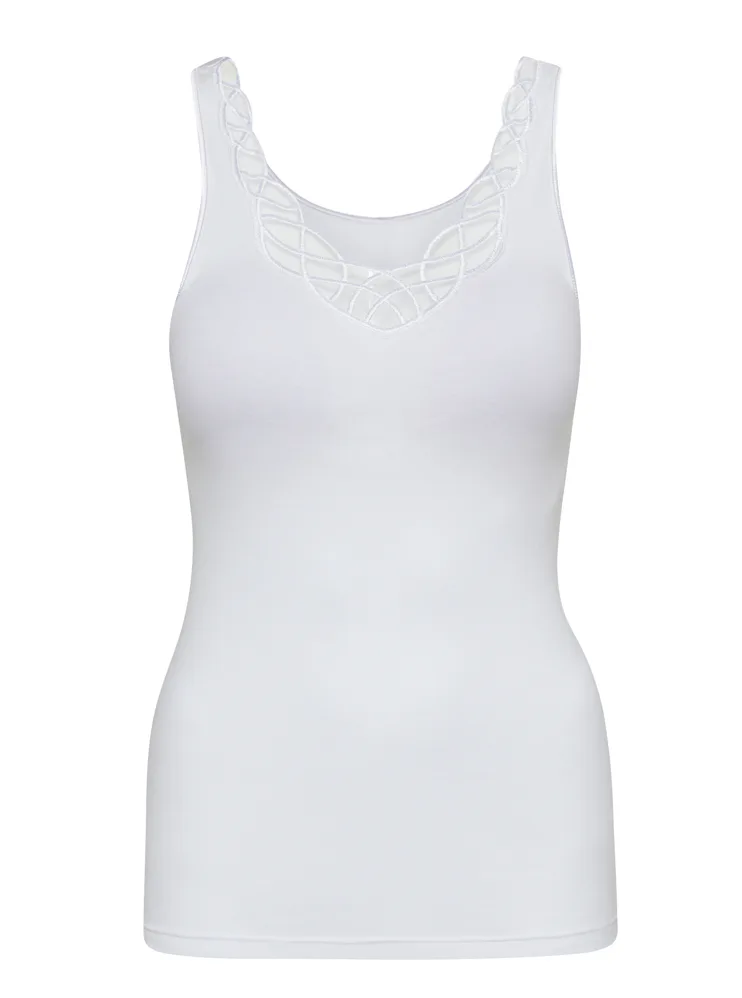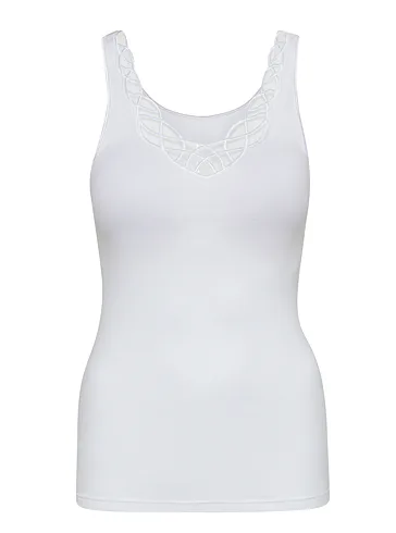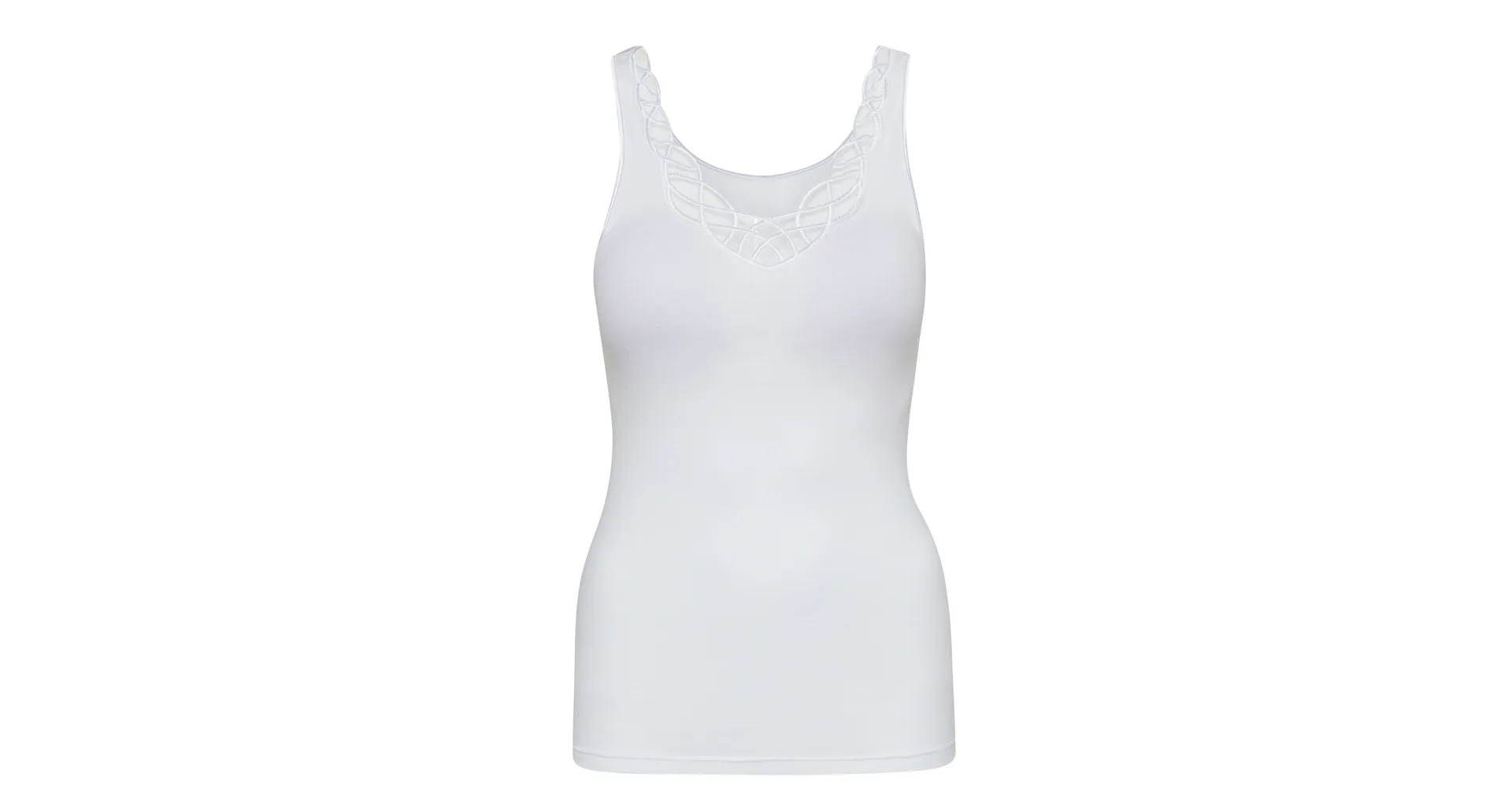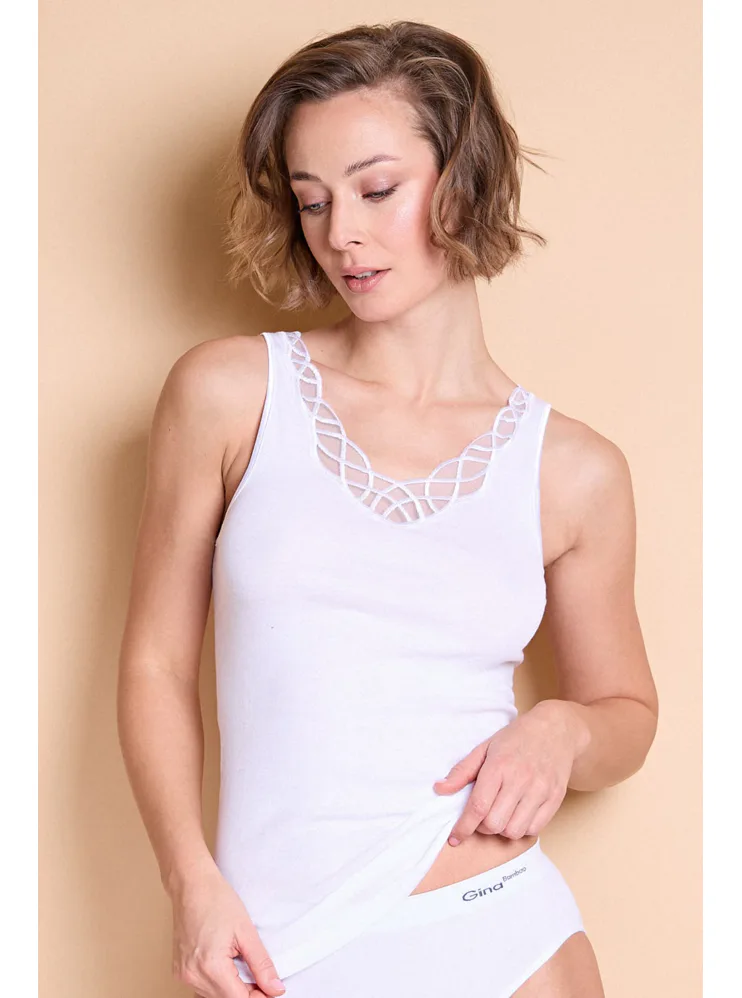 Dámske tielko vás zaujme elegantným dizajnom s čipkou vo výstrihu. Biela košieľka je nepostrádateľným kúskom vášho šatníka a dá sa kúpiť až do veľkosti 48.