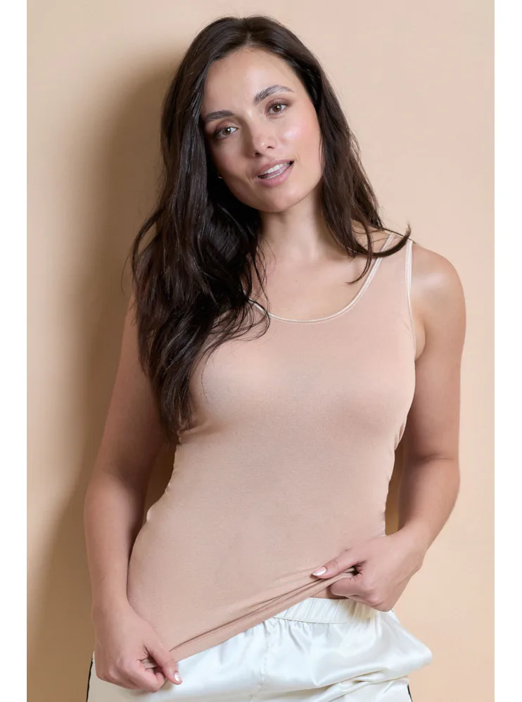Dámske tielko vyrobené z modalu zaistí pohodlie pri celodennom nosení, a to vďaka svojej mäkkosti, pružnosti a priedušnosti. Nadčasové tielko je ideálne na údržbu a môžete ho nosiť po celý rok.