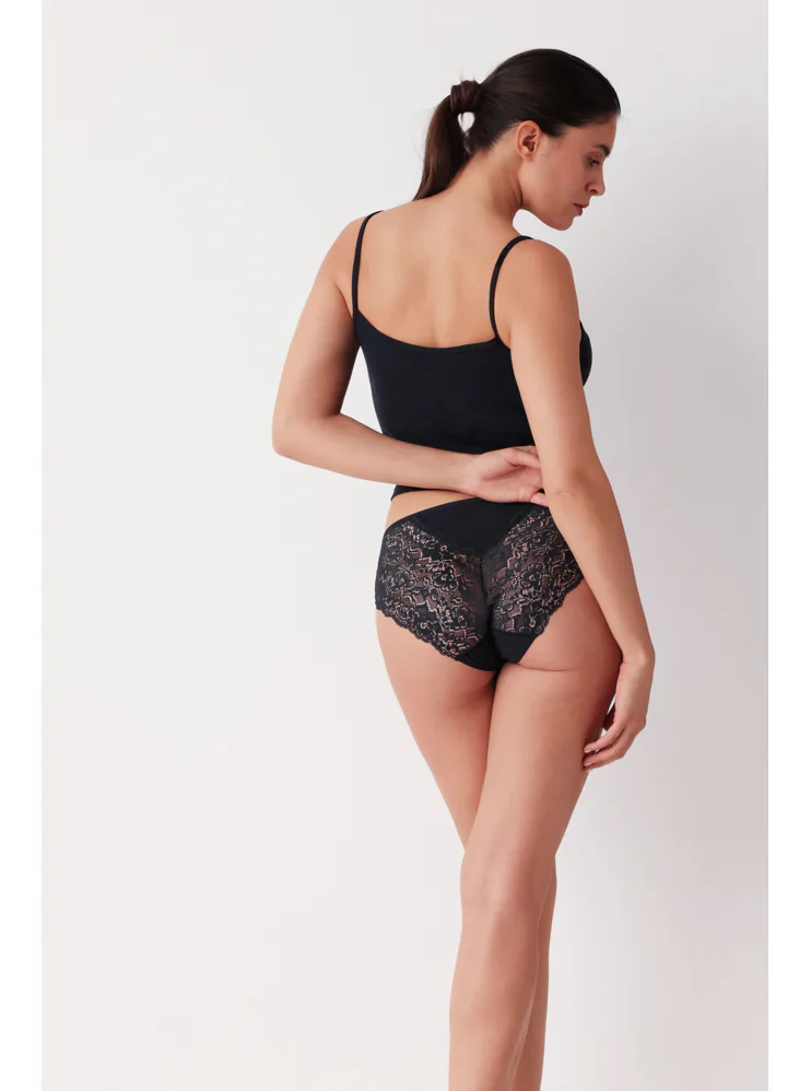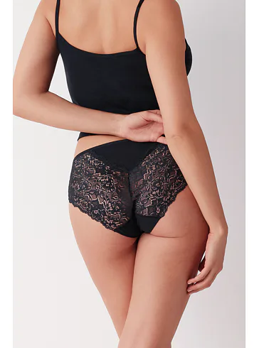 Nohavičky klasického strihu zaujmú hladkým dizajnom vpredu a elegantnou čipkou vzadu. Kúpte si bavlnené nohavičky, ktoré sú pohodlné a štýlové zároveň.