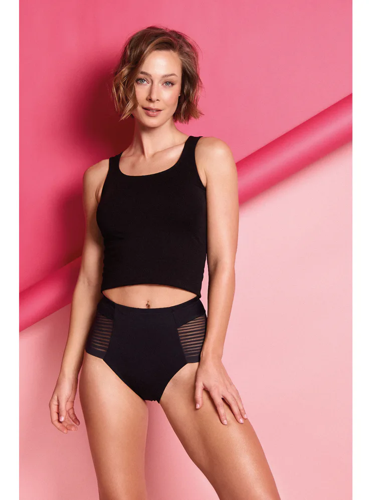 Nohavičky majú zvýšený pás a push up efekt v oblasti zadku. Opticky zoštíhľujú postavu a poskytujú príjemnú oporu. Čierne nohavičky majú vzadu šev v tvare písmena Y pre optické tvarovanie zadku. Najviac ich budete nosiť pod priliehavé oblečenie, pretože krásne zvýraznia vaše ženské krivky. Získajte sťahovacie nohavičky, ktoré hravo skrývajú problematické miesta. Dajú sa kúpiť aj v nude farbe.