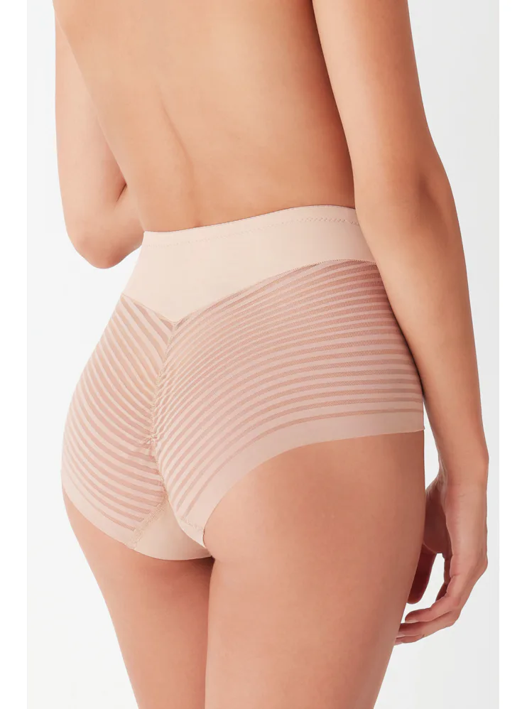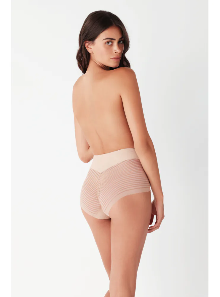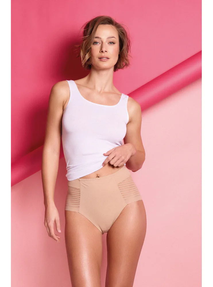 Nohavičky majú zvýšený pás a push up efekt v oblasti zadku. Opticky zoštíhľujú postavu a poskytujú príjemnú oporu. Telové nohavičky majú vzadu šev v tvare písmena Y pre optické tvarovanie zadku. Najviac ich budete nosiť pod priliehavé oblečenie, pretože krásne zvýraznia vaše ženské krivky. Získajte sťahovacie nohavičky, ktoré hravo skrývajú problematické miesta. Dajú sa kúpiť aj v čiernej farbe.