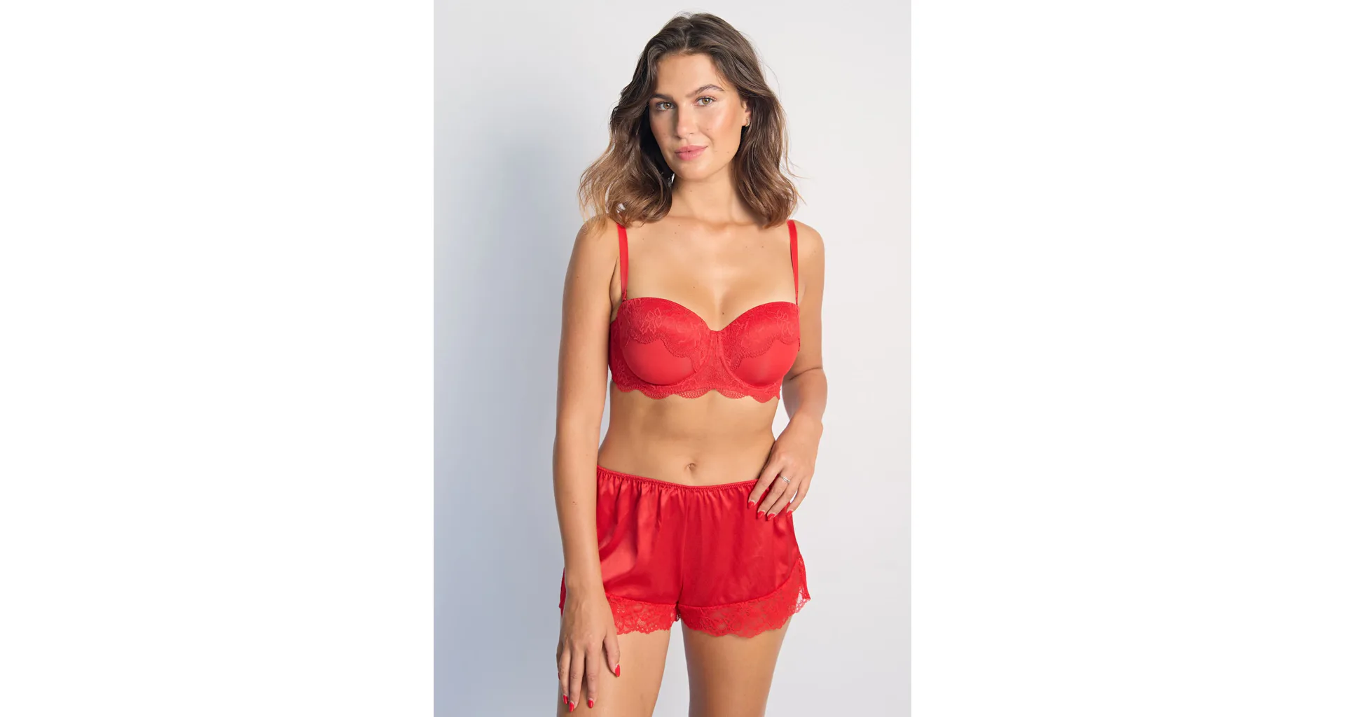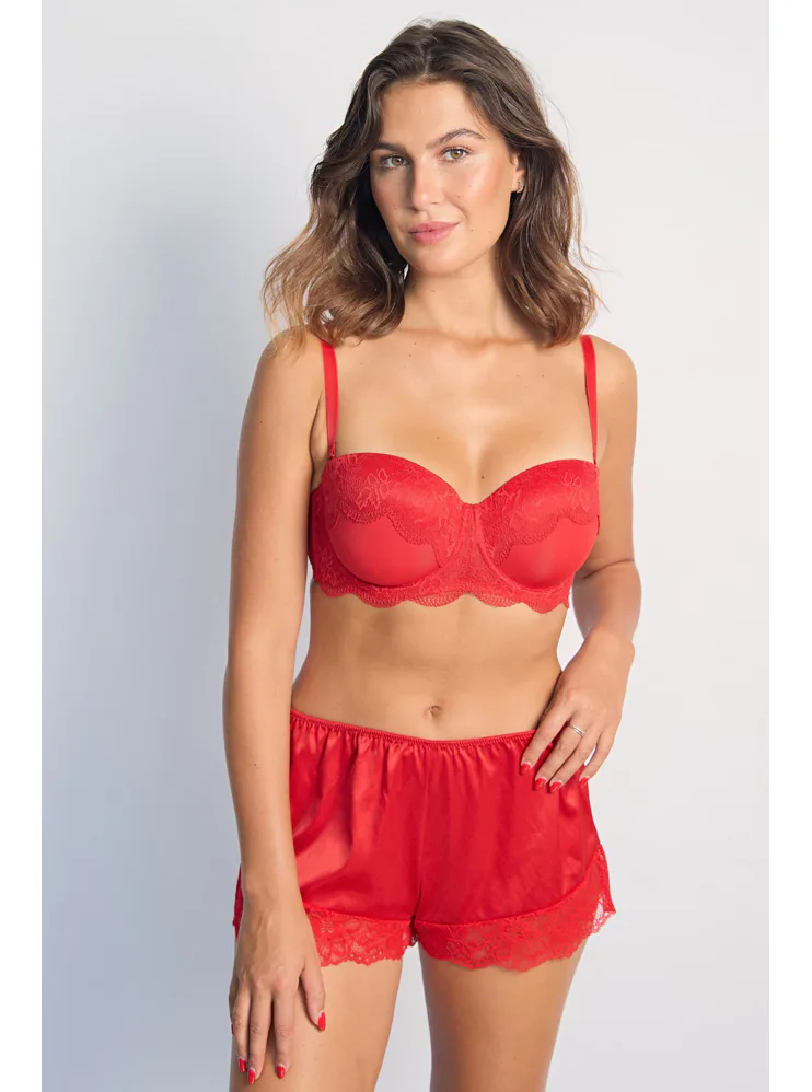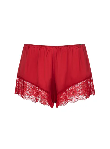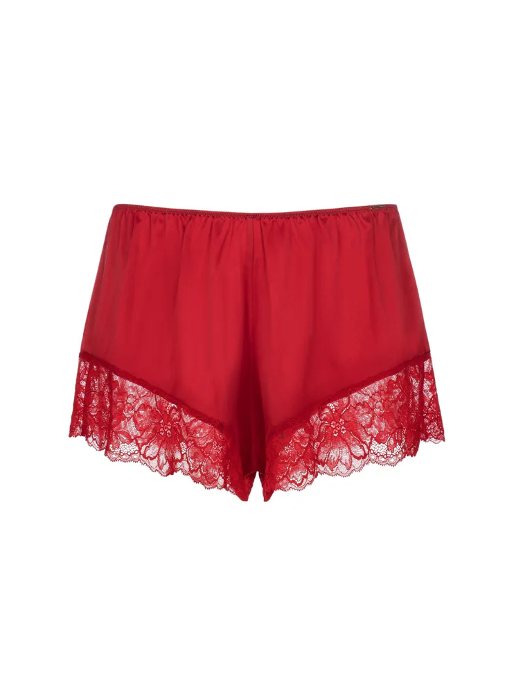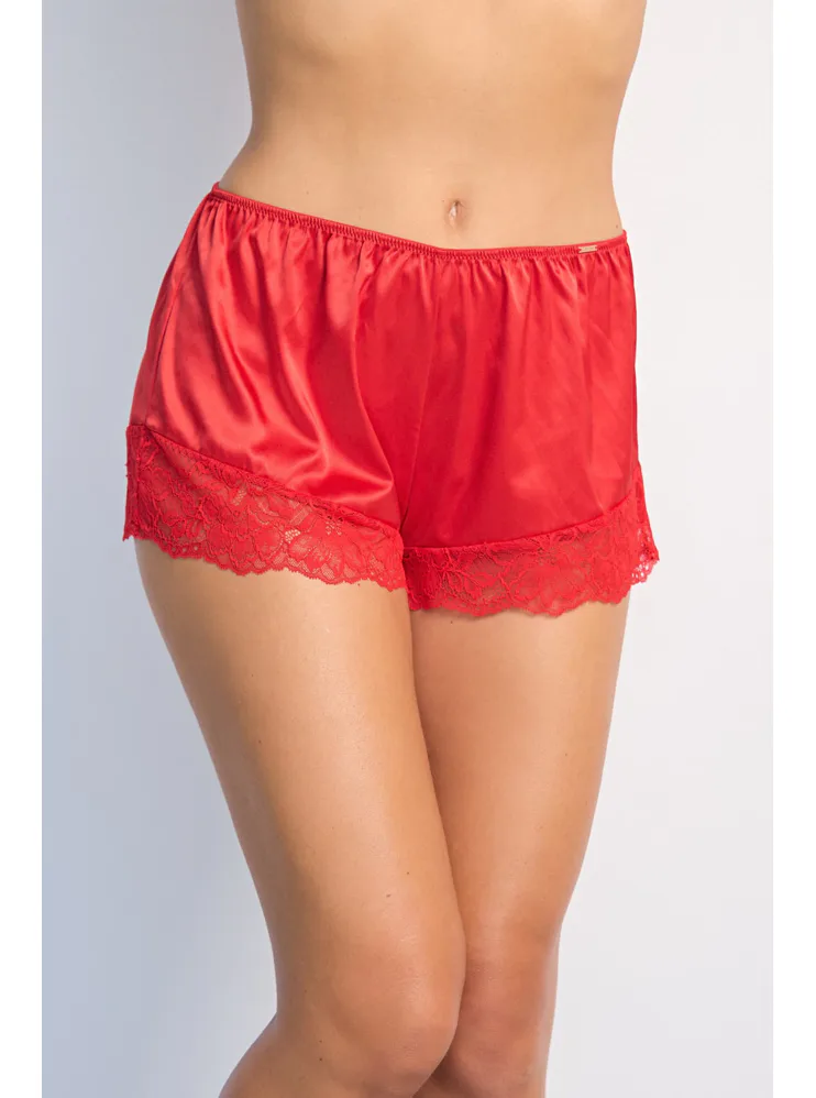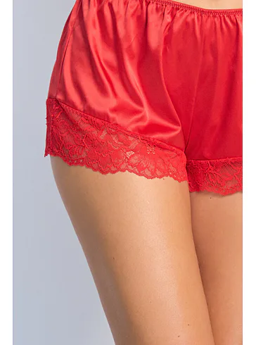 Saténové červené šortky na spanie Dorina vám zaistia maximálne pohodlie po celú noc. V páse majú gumu, vďaka ktorej perfektne sedia a zároveň netlačia. Vhodné nielen na spanie, ale aj ako domáci odev. Konce nohavičiek sú zdobené jemnou čipkou. K šortkám si možno zaobstarať aj červenú saténovú košieľku a mať tak kompletný set.