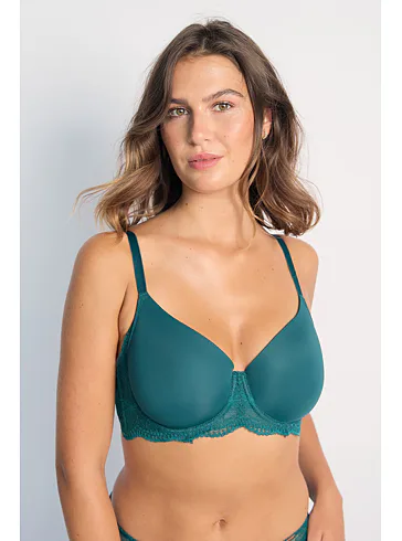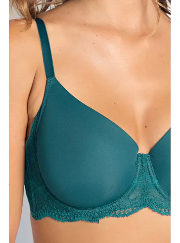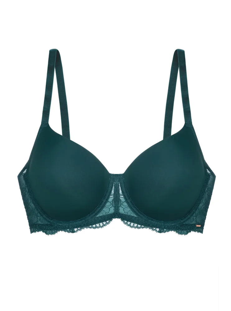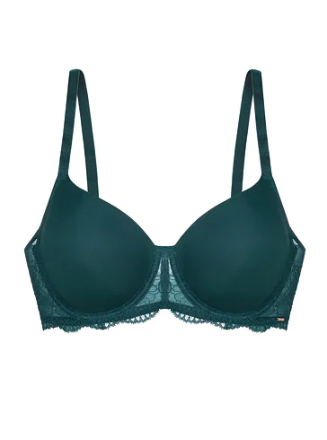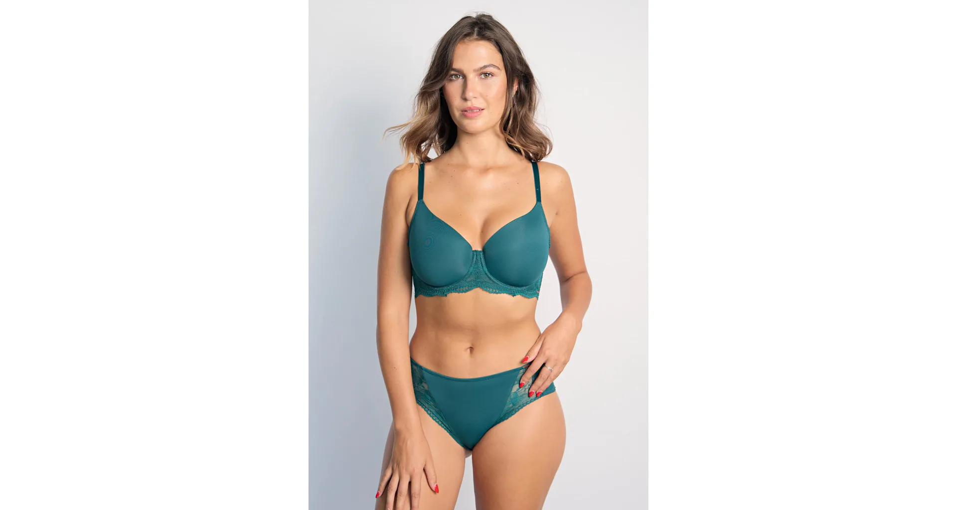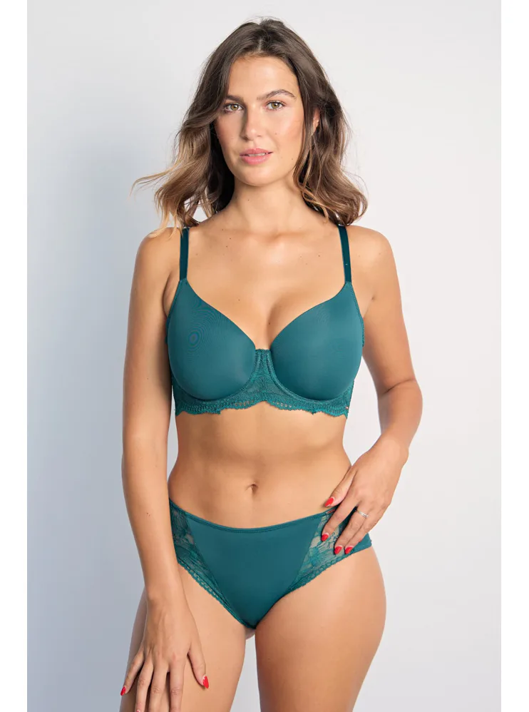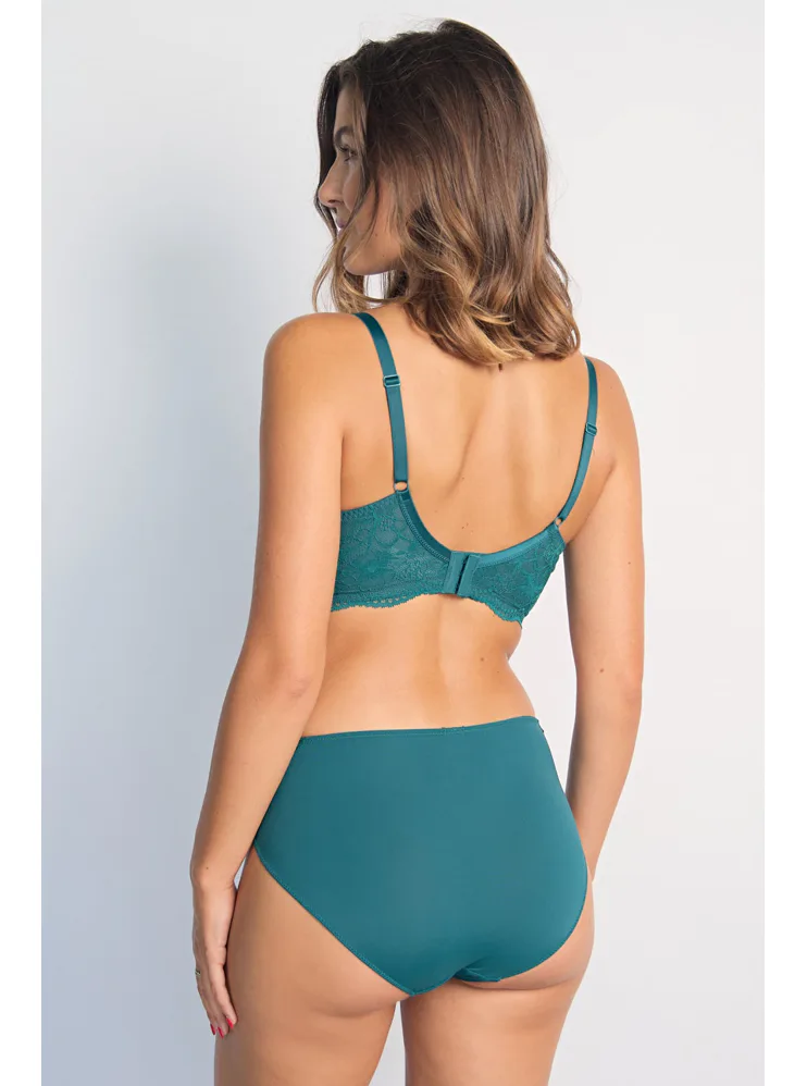 Podprsenka Dorina v zelenej farbe s kosticami na prvý pohľad zaujme romantickou čipkou. Je vyrobená z ekologického mikrovlákna a čipky. Doprajte si maximálne pohodlie pri celodennom nosení. Vystužená podprsenka poskytne poprsiu potrebnú podporu a udrží prsia pevne na mieste. K tejto podprsenke si možno zaobstarať nohavičky v rovnakom dizajne.