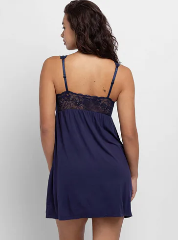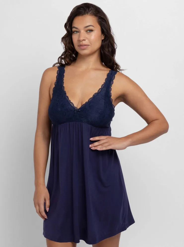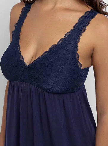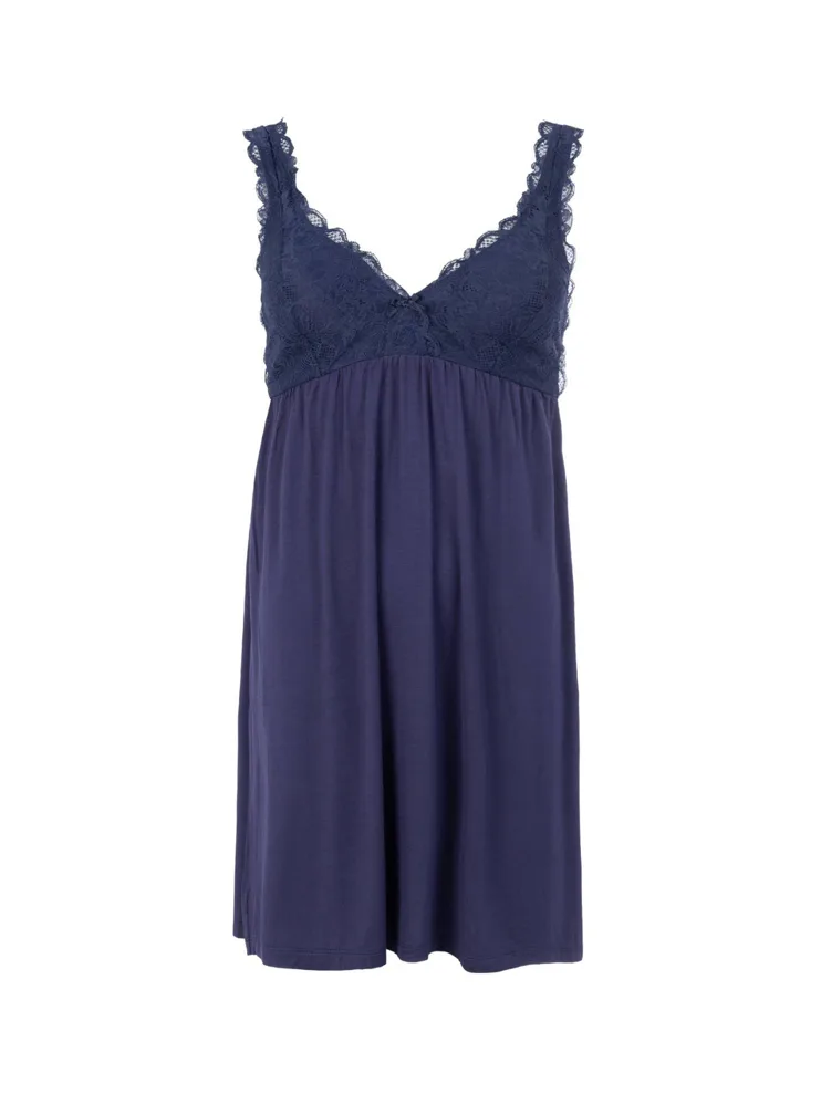 Dámska nočná košeľa v tmavo modrej farbe vás uchváti maximálnym pohodlím a elegantným vzhľadom. Košieľka s dĺžkou nad kolená je ideálna nielen na spanie, ale aj ako atraktívny domáci odev.