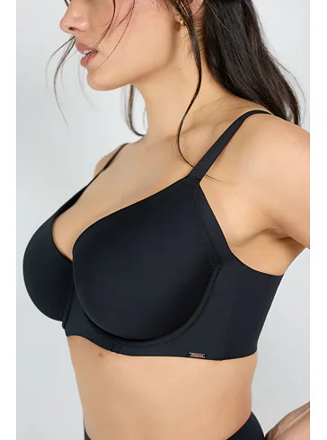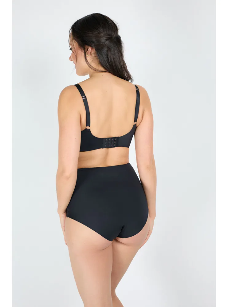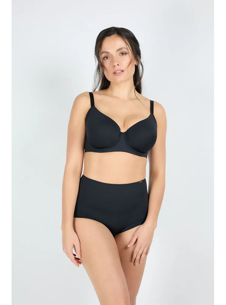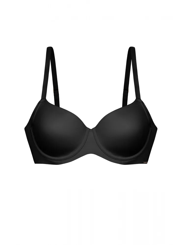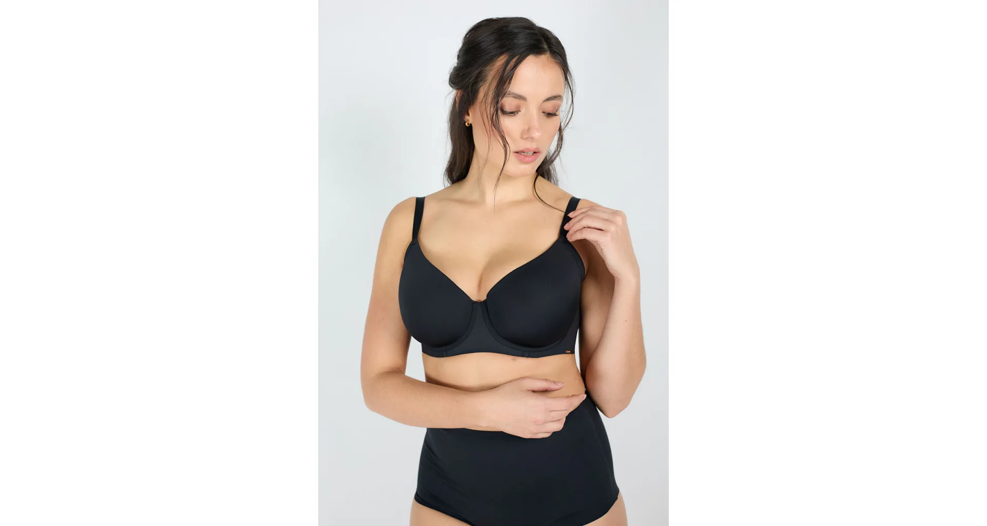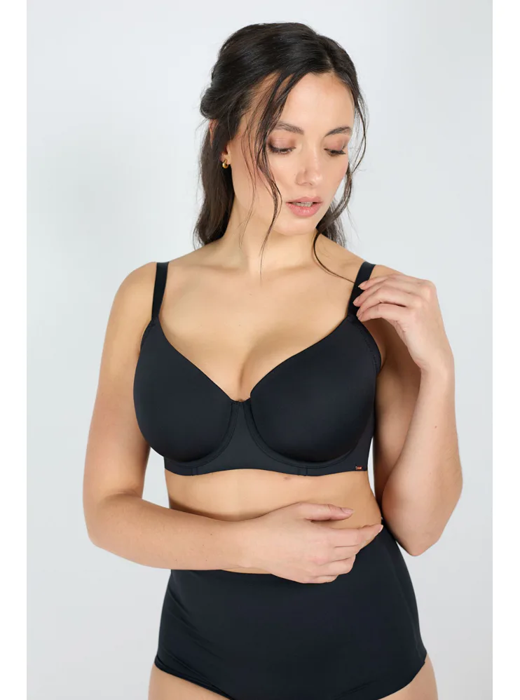Čierna podprsenka zvýrazní ženské krivky a vytvorí lichotivý dekolt. Vysoký stred s uzavretým strihom je vhodný pre väčšie veľkosti poprsia, poskytuje komfort a poprsie pekne zaguľatí. Má nastaviteľné ramienka, ktoré pomáhajú rovnomerne rozložiť váhu pŕs. Zapínanie sa nachádza vzadu na tri háčiky. Bezošvý zadný diel sa nerysuje pod oblečením. Zaobstarajte si podprsenku, ktorá vám poskytne dokonalú kombináciu podpory, pohodlia a elegancie.
