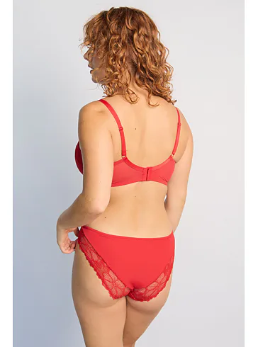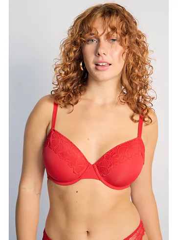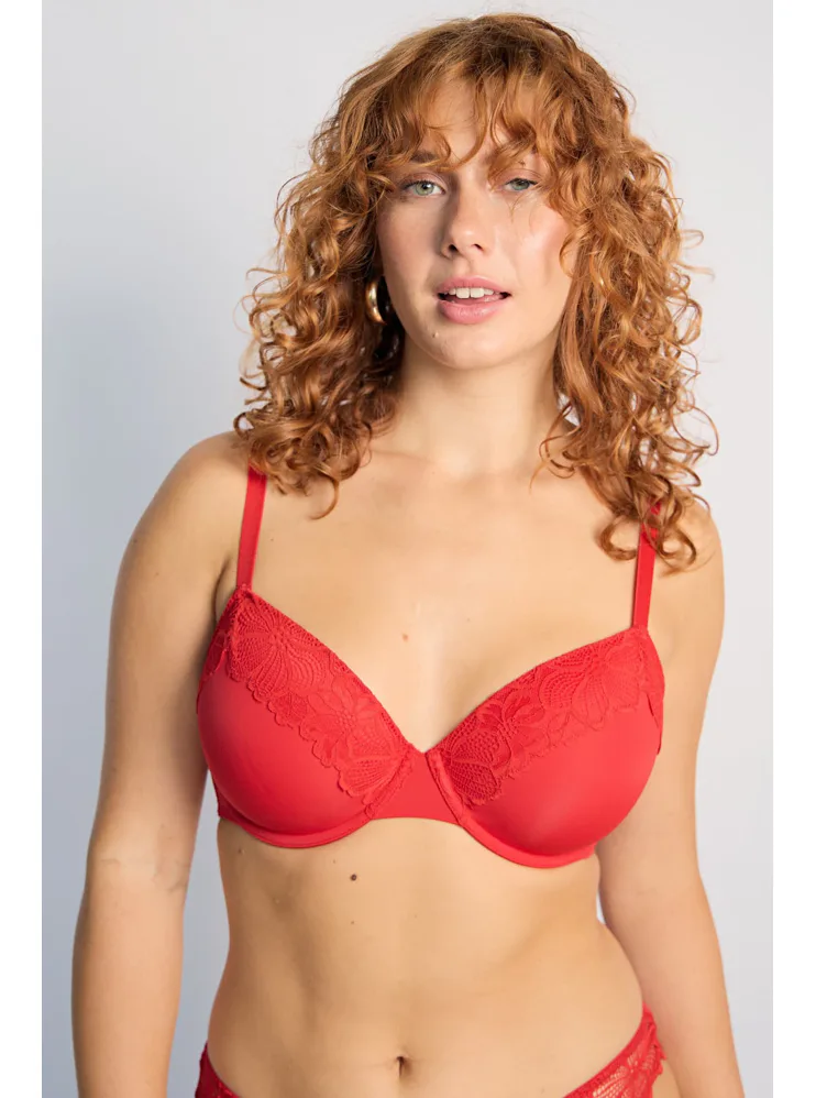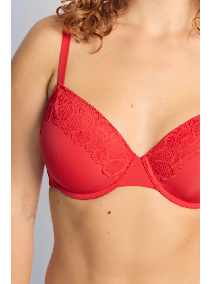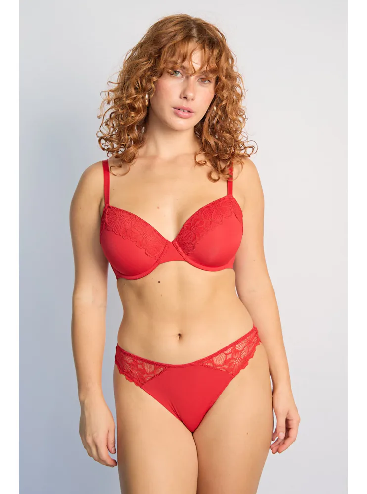 Červená podprsenka s krajkovým zdobením vo výstrihu a vystuženými košíčkami vykúzli zvodný dekolt. Podprsenka Dorina je spojením pohodlného strihu a kvalitného spracovania z udržateľného materiálu. Urobte si radosť novým kúskom vo vašom šatníku. K tejto podprsenke si možno zaobstarať nohavičky v rovnakom dizajne.