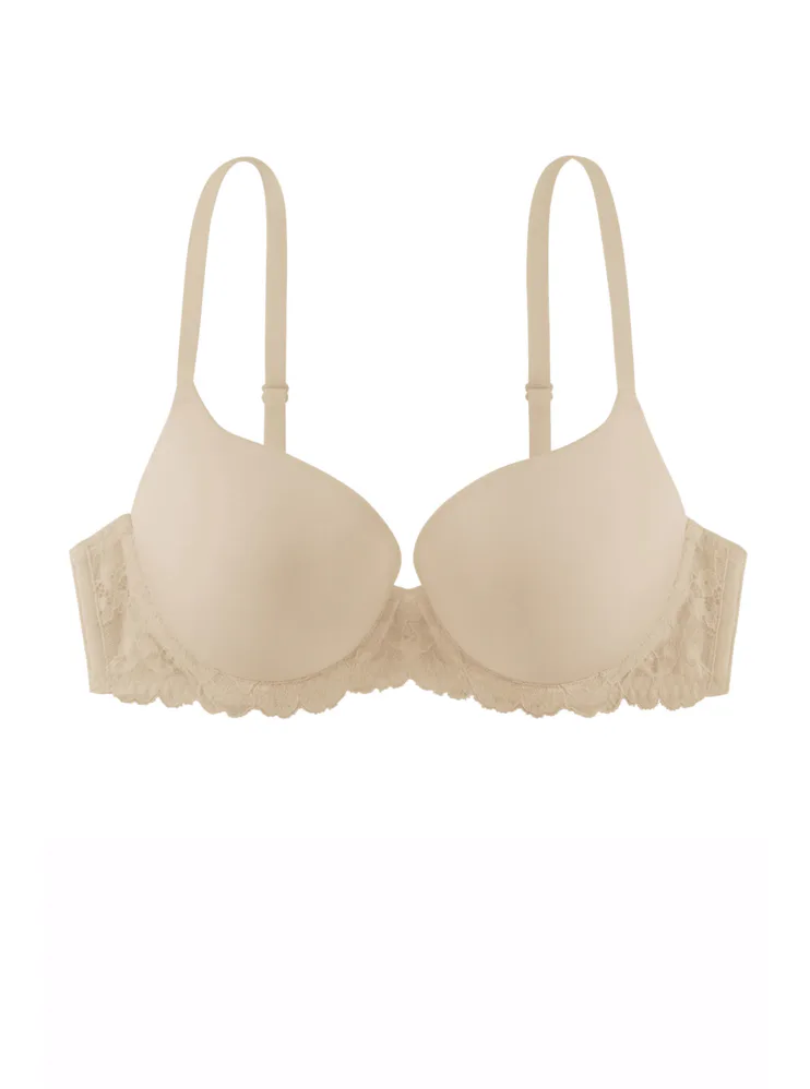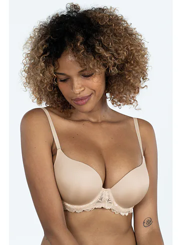 Push up podprsenka telovej farby vytvorí atraktívnejší a plnší vzhľad dekoltu. Má nižší stred a hladké vystužené košíčky, ktoré sa vám nebudú rysovať pod priliehavým oblečením. Klasické kostice perfektne fixujú poprsie, poskytujú mu potrebnú oporu a nikde netlačia. Ramienka je možné nastaviť podľa potreby a zapínanie má na dva háčiky s tromi polohami stiahnutia. Rozmaznávajte sa elegantným spodným prádlom, v ktorom sa budete cítiť sebavedome a sexi.