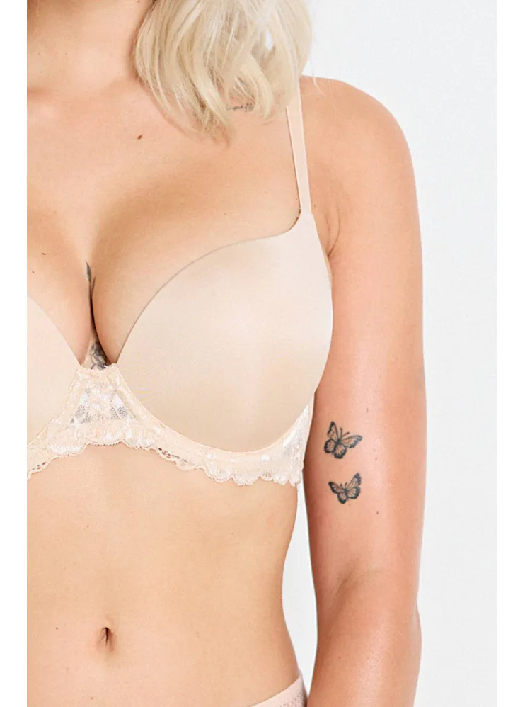 Super push up podprsenka s čipkou telová