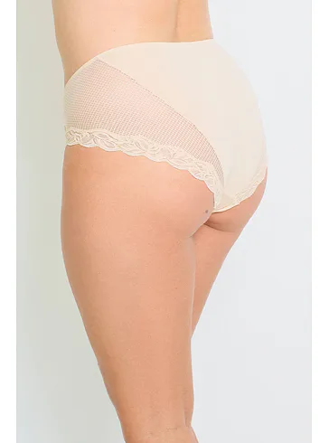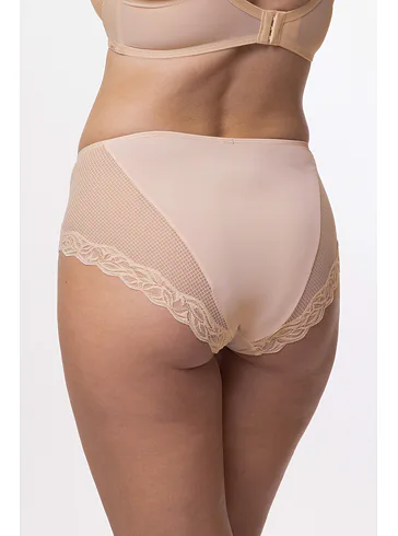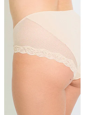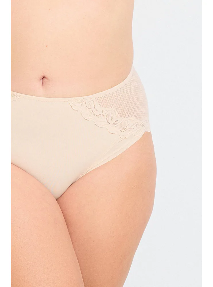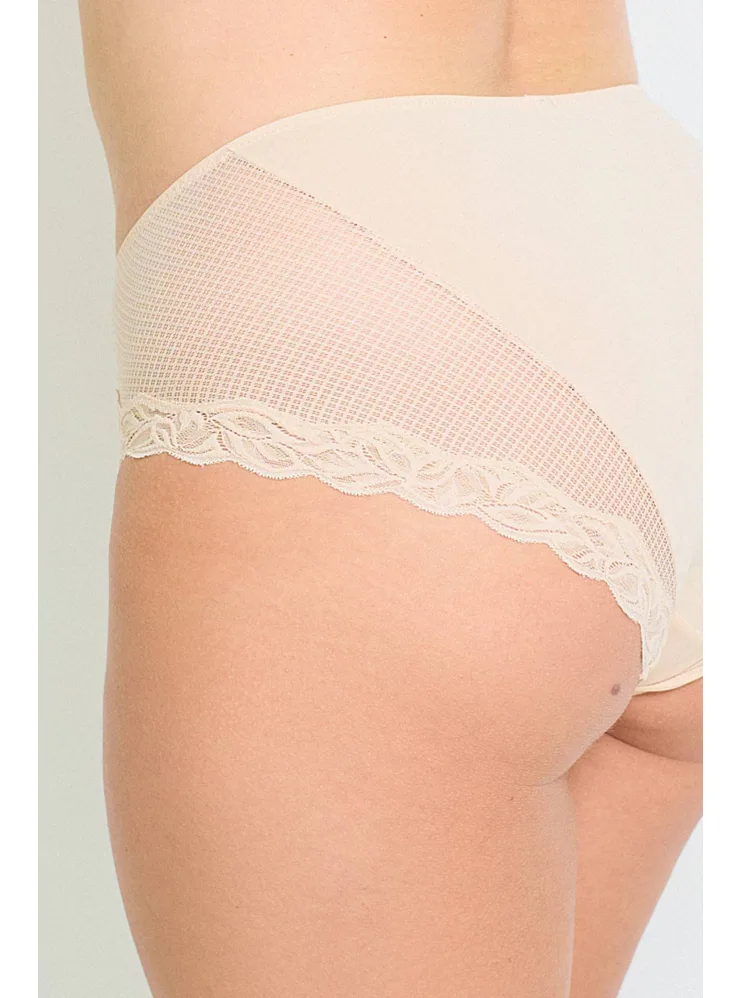 Nohavičky Dorina sú vyrobené z udržateľného materiálu a pýšia sa certifikátom kvality a nezávadnosti Oeko-Tex® Standard 100. Prispôsobia sa tvaru vášho tela a nikde sa nezarezávajú. Rafinovaná sieťovina s čipkou dodáva nohavičkám eleganciu a podčiarkne vaše ženské krivky. Majú zosilnený hygienický bavlnený klin. Nohavičky v telovej farbe je možné zaobstarať až do veľkosti 3XL.