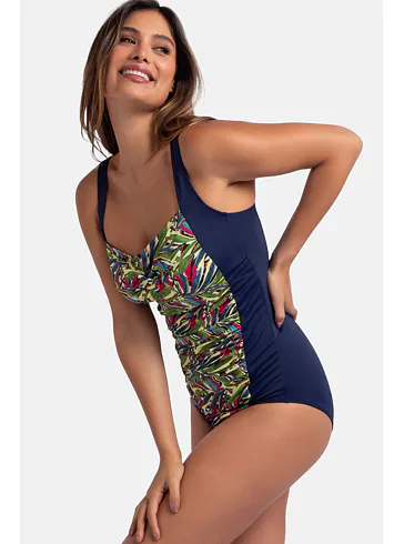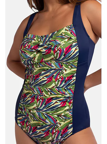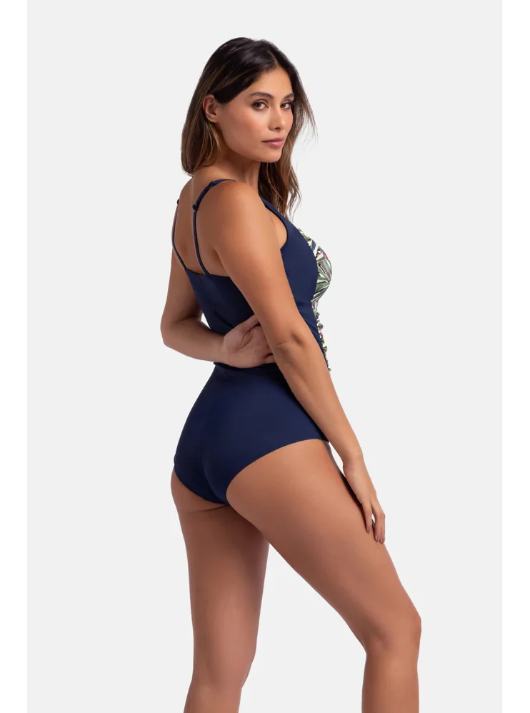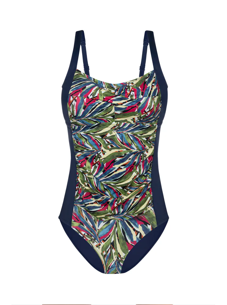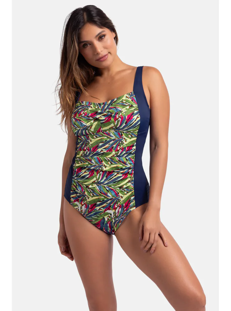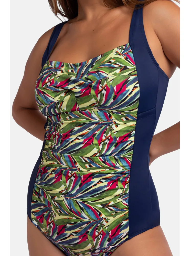 Vystužené dámske plavky bez kostíc zaistia potrebnú oporu a vykúzlia pôvabný dekolt. Uchváti vás na prvý pohľad letným farebným vzorom v prednej časti. Jednodielne plavky s riasením schovajú bruško a vytvoria krásnu siluetu. Nastaviteľné ramienka umožňujú individuálne prispôsobenie dĺžky podľa potreby. Jednodielne plavky sú praktické, nezhŕňajú sa, perfektne sadnú každému typu postavy a dajú sa zaobstarať až do veľkosti 3XL.