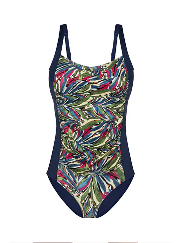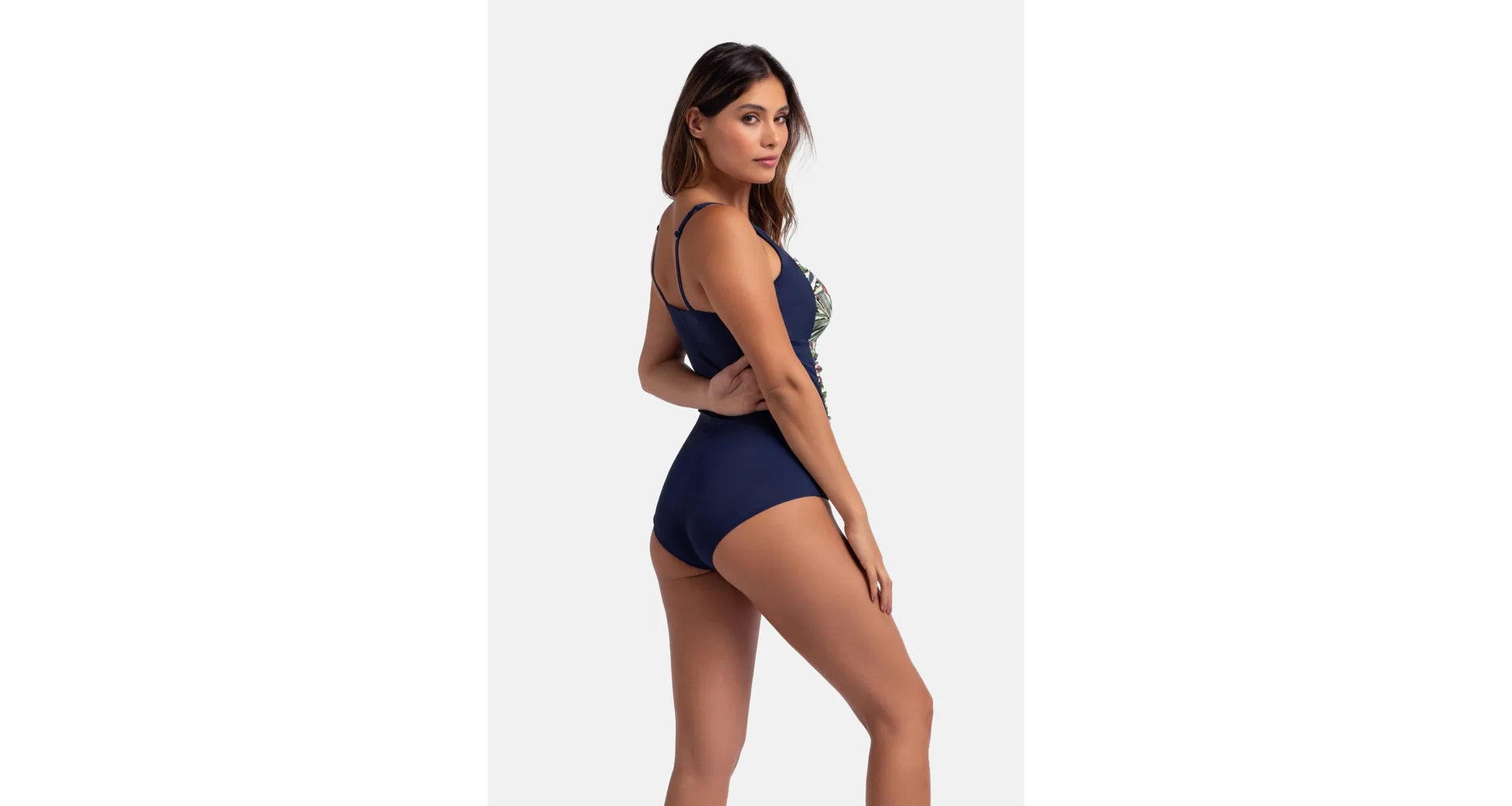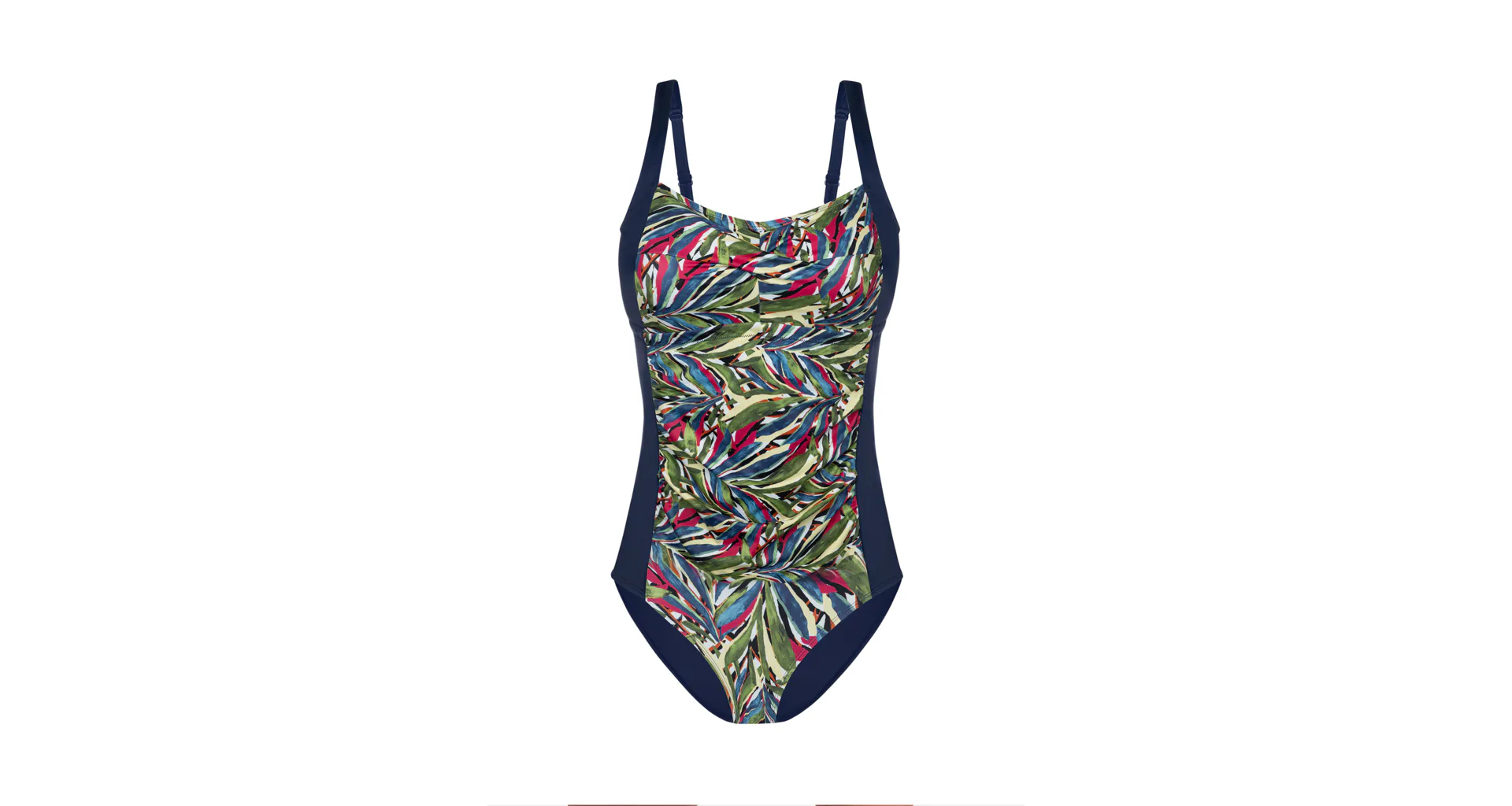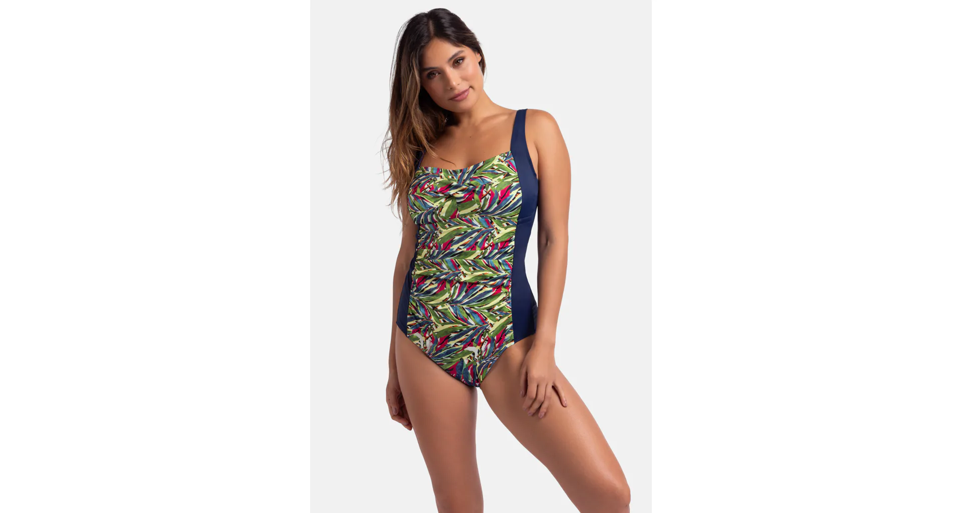 Vystužené dámske plavky bez kostíc zaistia potrebnú oporu a vykúzlia pôvabný dekolt. Uchváti vás na prvý pohľad letným farebným vzorom v prednej časti. Jednodielne plavky s riasením schovajú bruško a vytvoria krásnu siluetu. Nastaviteľné ramienka umožňujú individuálne prispôsobenie dĺžky podľa potreby. Jednodielne plavky sú praktické, nezhŕňajú sa, perfektne sadnú každému typu postavy a dajú sa zaobstarať až do veľkosti 3XL.