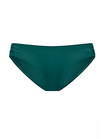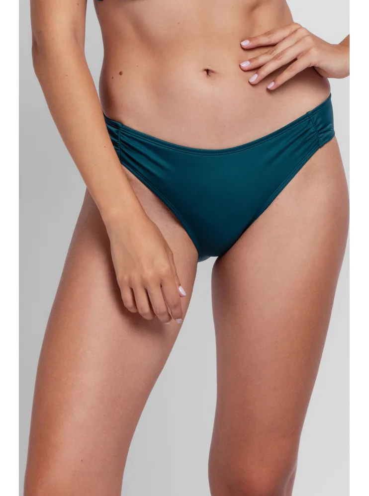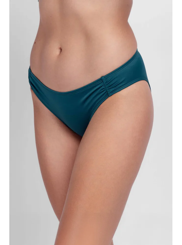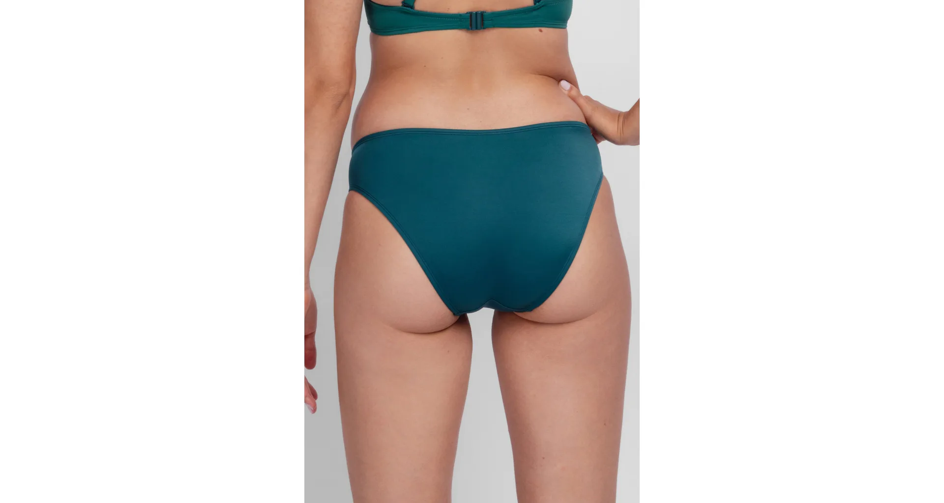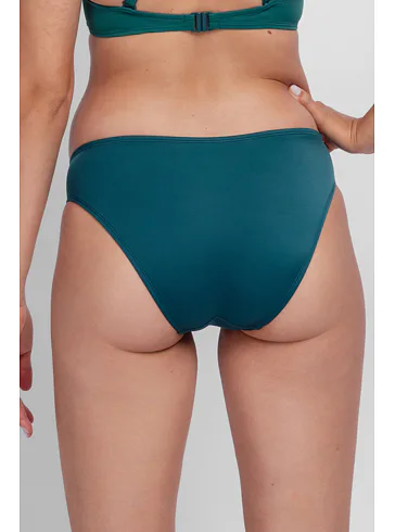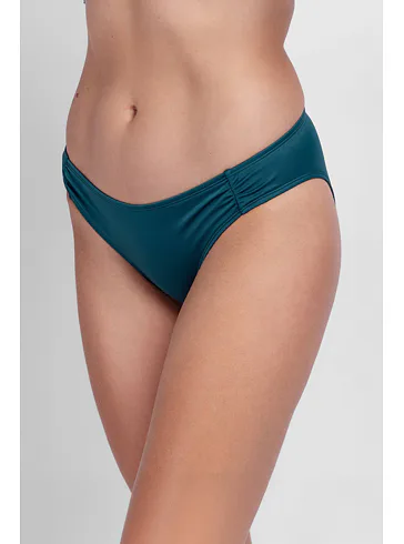 Plavkové nohavičky zelené sú vyrobené z ekologického materiálu. Poskytujú dostatočné krytie, ľahko sa kombinujú s akýmkoľvek vrchným dielom plaviek a prispôsobia sa ženským krivkám. Zaujmú elegantným riasením na bokoch, ktoré opticky zoštíhľuje postavu. Klasický strih nohavičiek je nadčasový a medzi ženami veľmi obľúbený. Nikde netlačia, nezarezávajú sa a neskĺzavajú. Skvelá voľba pre letné dni plné pohody pri vode.