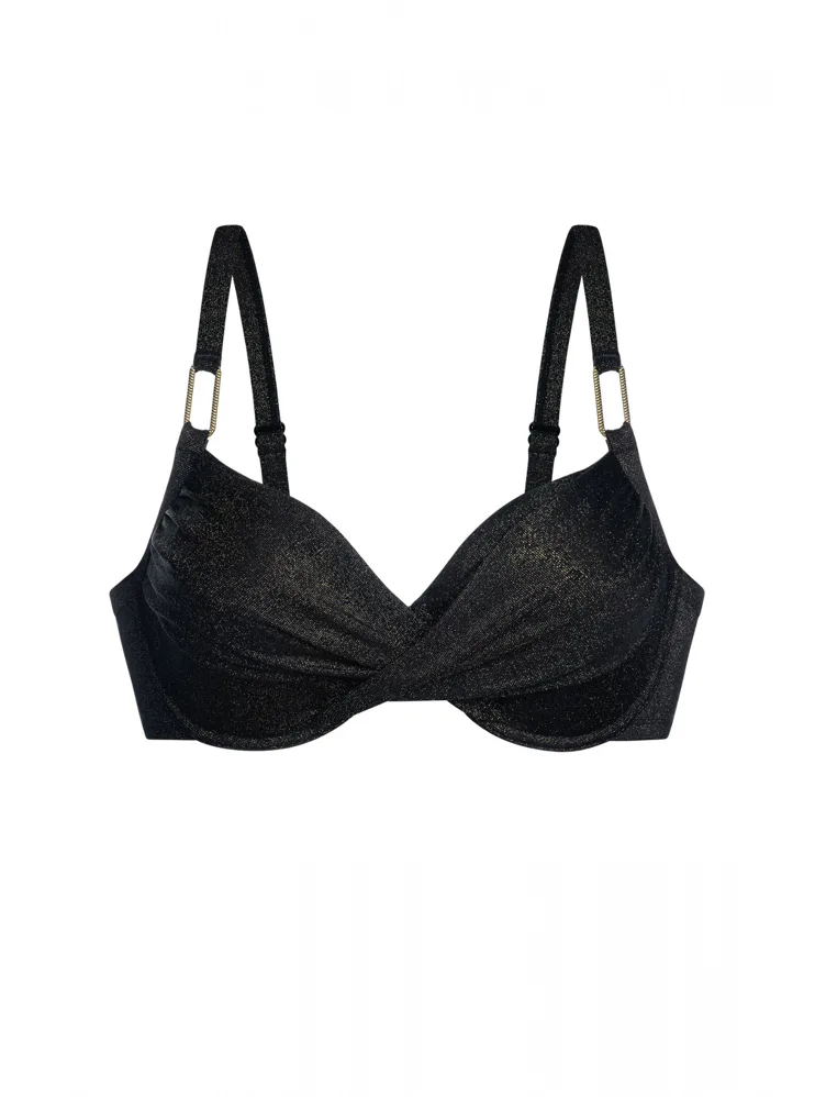 Zažiarte na pláži v plavkách z novej letnej kolekcie. Nevystužená plavková podprsenka v čiernej farbe zaujme trblietavým efektom. Ste pripravená na novú letnú sezónu?