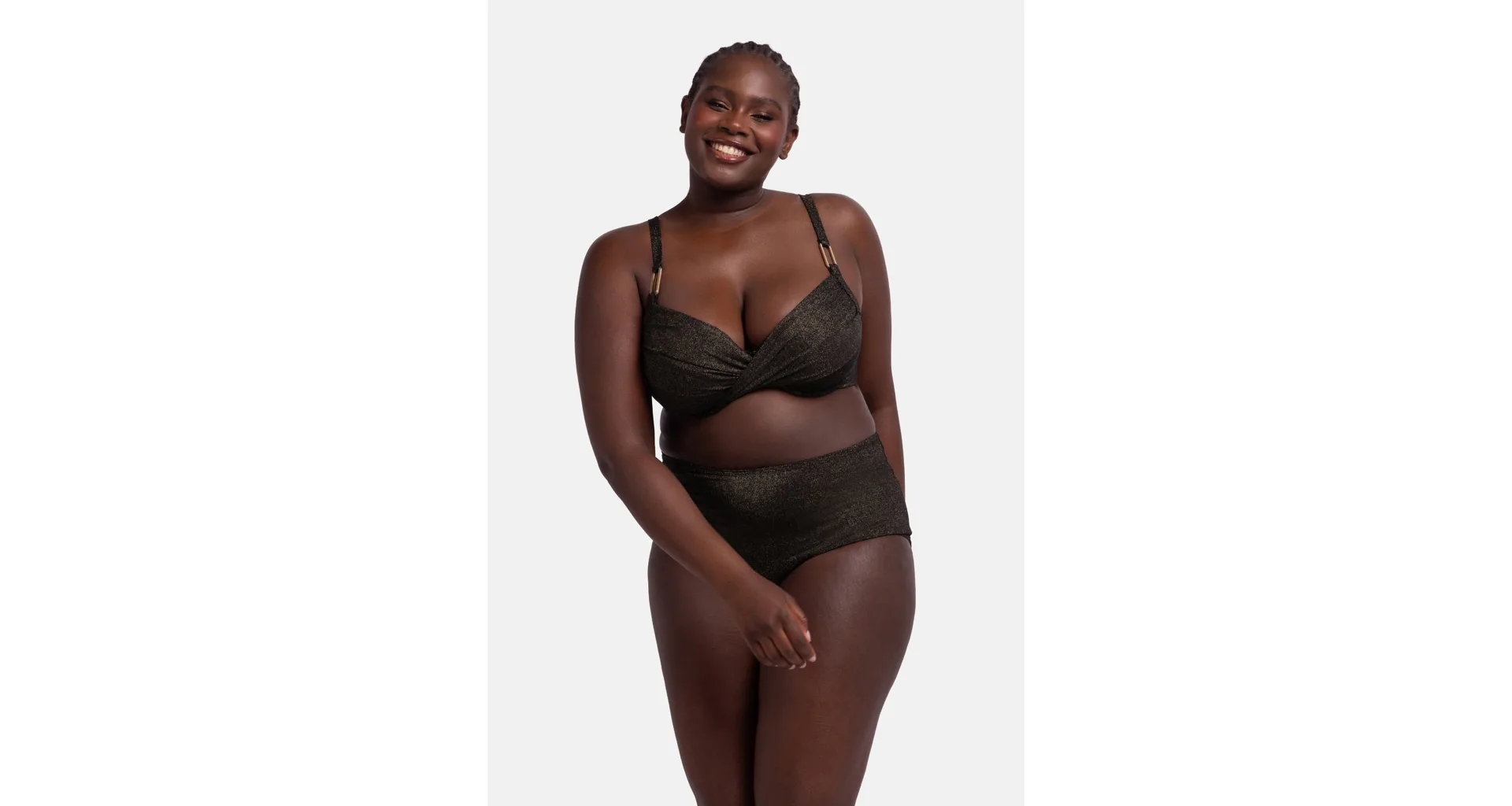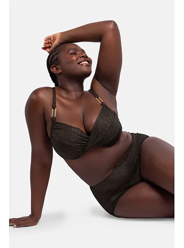 Nevystužený horný diel plaviek s kosticou je ideálny do hlbokých výstrihov, vytvorí neodolateľný dekolt. Lurexové plavky sú pohodlné na nosenie, rýchlo schnú a vynikajú dlhou životnosťou. Zaujmú ozdobnou sponou na ramienkach a detailne prepracovaným dizajnom prekrútených košíčkov. Majú nastaviteľné ramienka a zapínanie vzadu na háčiky. Užite si dovolenku naplno v plavkách, ktoré zvýraznia vaše krivky.