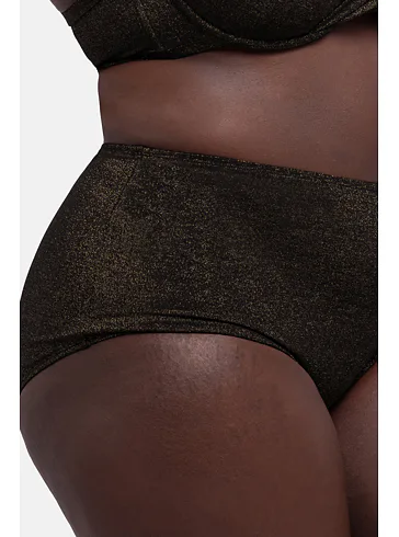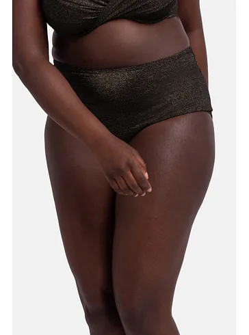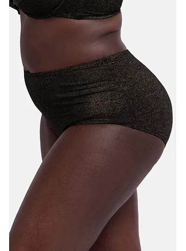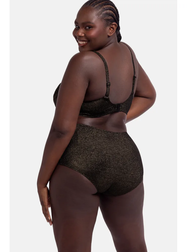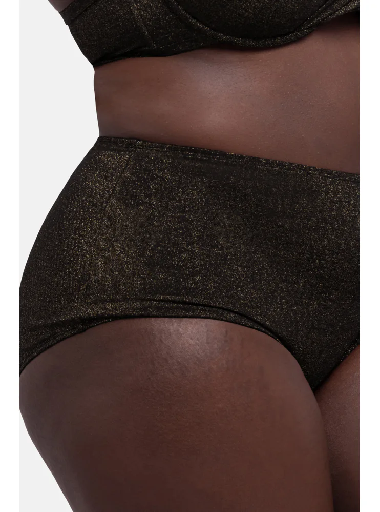 Čierne plavky zaujmú trblietavým efektom a zvýšeným pásom. Spevnia oblasť bruška a zoštíhlia pas. Lurexový materiál vďaka svojmu metalickému efektu pôsobí luxusne a elegantne, vyniká odolnosťou proti oderu a pretrhu. Lurexové plavky sú nadčasové a doprajú vám pohodlie vo vode aj na pláži. Pripravte sa na leto a kúpte si plavky Dorina z novej letnej kolekcie.
