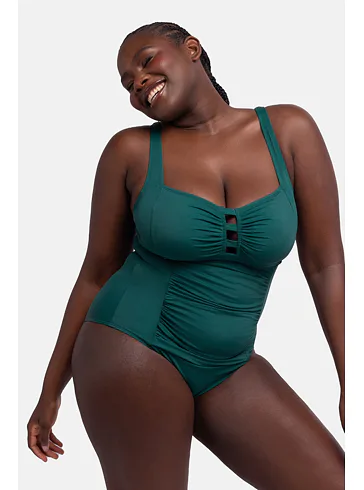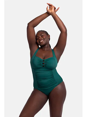 Elegantné jednodielne plavky zaujmú riasením na prednom diele, ktoré opticky zoštíhli pás a podčiarkne ženské krivky. Vystužené košíčky poskytujú optimálnu podporu a pohodlie a nastaviteľné ramienka umožňujú plavky prispôsobiť presne podľa vašich potrieb. Majú vynímateľné vypchávky, ktoré formujú tvar pŕs. Pridajte plavky do košíka a užite si leto v novej letnej kolekcii.