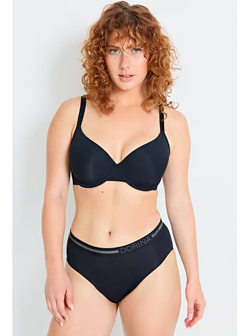 Podprsenka od nemeckej značky Dorina je vyrobená z udržateľného materiálu a má hladké koše, vďaka ktorým sa vám nebude rysovať ani pod priliehavým oblečením. Čierna podprsenka v jednoduchom dizajne je must have kúsok vo vašom šatníku. Poprsie udrží pevne na mieste a vykúzli sexy dekolt. Zapínanie má vzadu na dva háčiky s tromi polohami stiahnutia, samozrejmosťou sú nastaviteľné ramienka. Ideálne pre rôzne príležitosti, od každodenného nosenia po formálnejšie akcie.