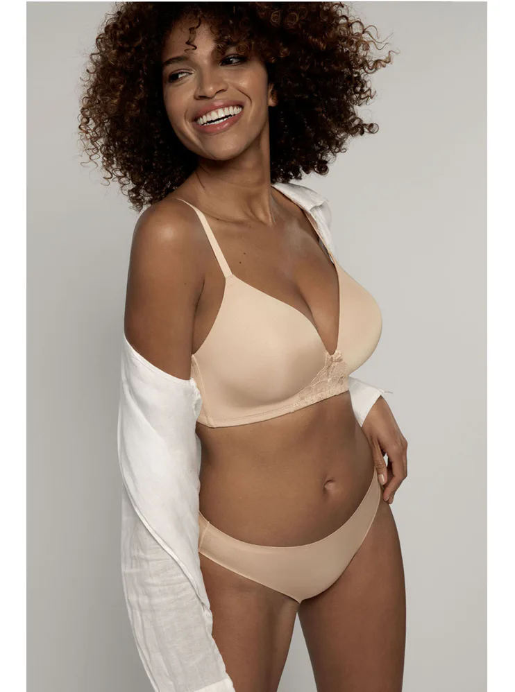 Tenko vystužená podprsenka bez kostíc zaisťuje poprsie dostatok opory a ponúka maximálne pohodlie. Ideálna voľba na každodenné nosenie.