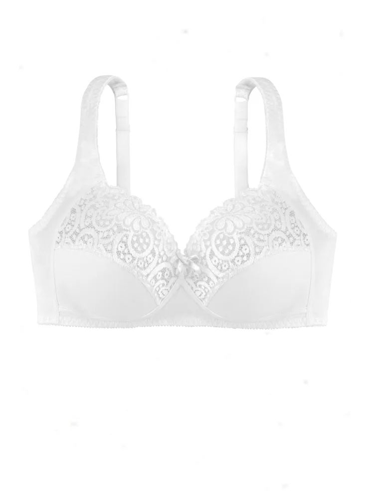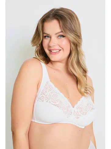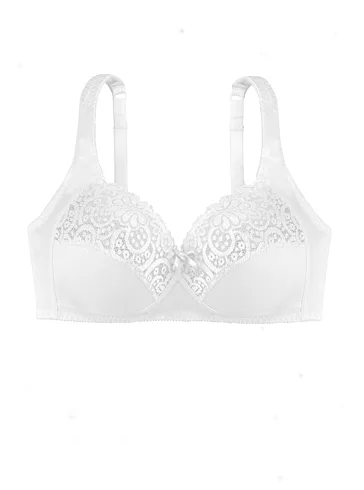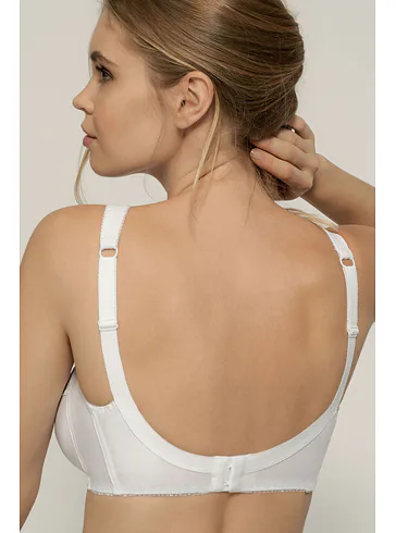 Podprsenka Dorina v bielej farbe je vyrobená z príjemnej bavlny, ktorá vyniká priedušnosťou, hypoalergénnymi vlastnosťami a pri správnej starostlivosti má aj dlhú životnosť. Čipka dodáva podprsenke romantický nádych. Širšie ramienka sa nezarezávajú a pomáhajú rovnomerne rozložiť váhu pŕs. Vzadu je zapínanie pomocou dvoch háčikov s tromi uťahovacími polohami. Podprsenku je možné zakúpiť aj v čiernej farbe.