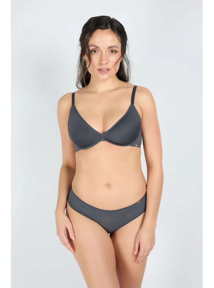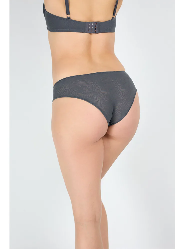 Tmavosivé nohavičky zaujmú decentným vzorom, prispôsobia sa vašim krivkám a vynikajú vysokou odolnosťou. Priehľadný dizajn dodáva nohavičkám zvodný nádych. Hygienický bavlnený klin absorbuje vlhkosť a umožňuje pokožke dýchať. Klasické nohavičky sú univerzálnym kúskom spodnej bielizne, ktorý nesmie chýbať v žiadnom šatníku. Nohavičky je možné zaobstarať vo veľkosť S-XL.