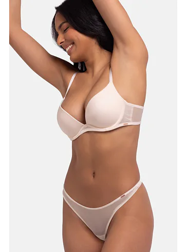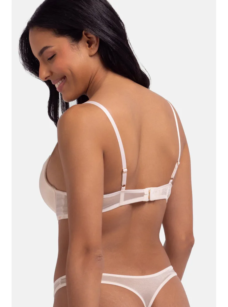 Push-up podprsenka krémová vykúzli až o jednu veľkosť väčšie poprsie. Zaujme trblietavou sieťovinou, ktorá jej dodáva luxusný a elegantný vzhľad. Koše z hladkého materiálu sa vám nebudú rysovať pod priliehavým oblečením. Nižší stred vytvorí plný dekolt aj s menším poprsím, ideálny do výstrihov. Nechýbajú nastaviteľné ramienka a praktické zapínanie vzadu na háčiky. Perfektná voľba pre ženy, ktoré chcú prirodzene pozdvihnúť svoje poprsie.