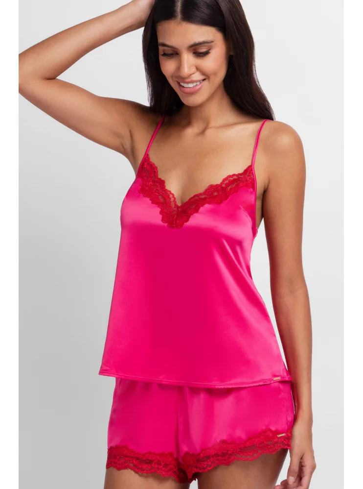 Odporúčame ju doplniť o saténové ružové kraťasy do setu , s ktorými získate luxusný a zladený komplet na spanie aj oddych.