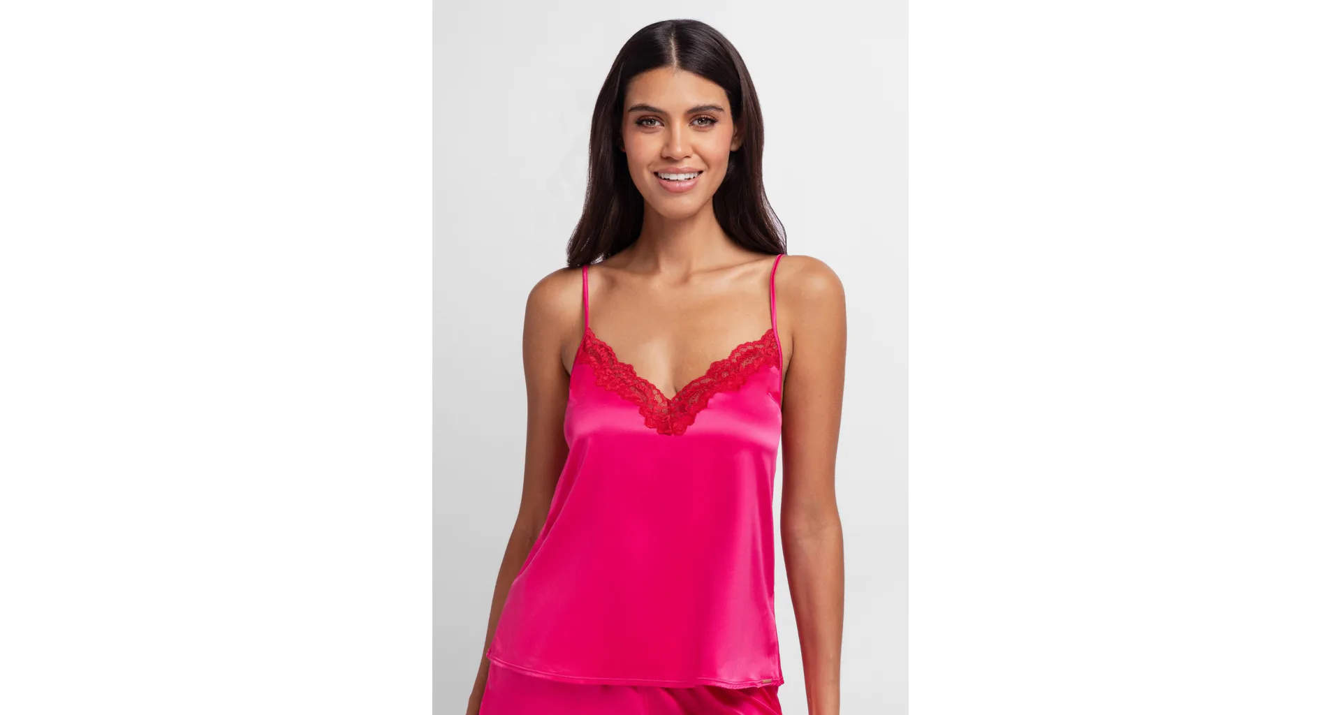 Saténová košieľka s úzkymi ramienkami v ružovej farbe