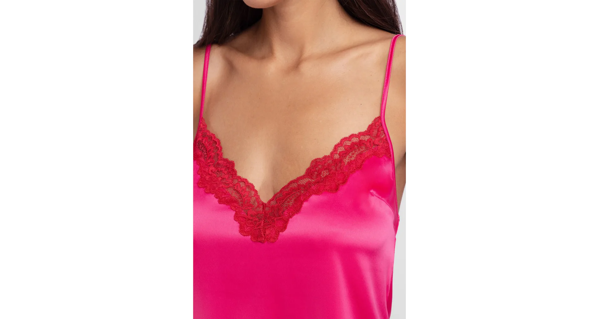 Luxusná košieľka v ružovej farbe je vyrobená z hladkého saténu, ktorý vyniká príjemným chladivým efektom. Košieľka má úzke posuvné ramienka, ktoré sa jednoducho prispôsobia vašej postave. Doprajte si pohodlnú a zároveň atraktívnu bielizeň od nemeckej značky Dorina.