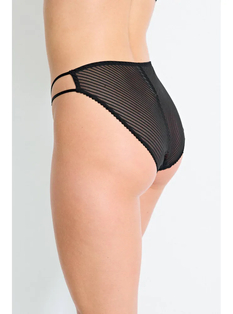 Nohavičky Dorina v klasickom strihu poskytujú maximálny komfort na celodenné nosenie, nikde neškrtia a nerežú. Sú vyrobené z ekologickej čipky a pruhovanej sieťoviny. Čierne klasické nohavičky sú tou správnou voľbou pre ženy, ktoré túžia po pohodlí, elegancii a udržateľnosti.