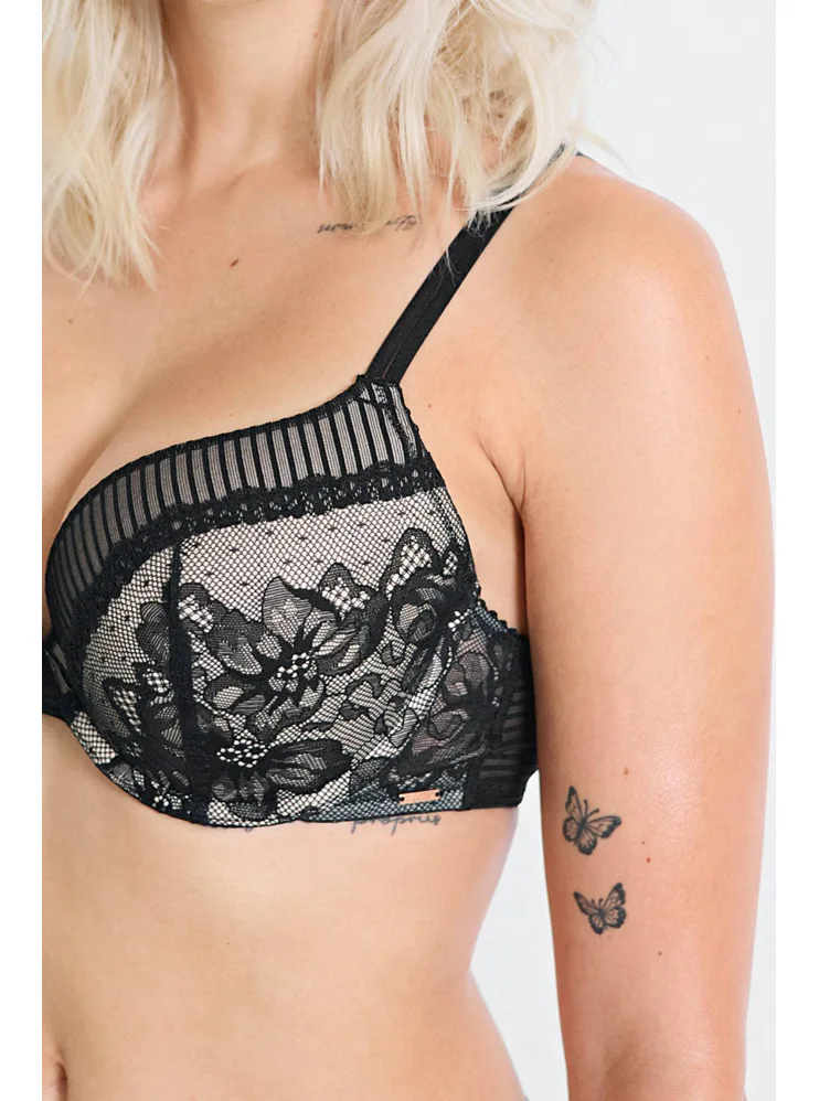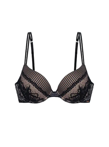 Podprsenka Dorina push-up zväčší vaše poprsie až o jednu veľkosť a vykúzli sexi dekolt. Zaujme romantickou čiernou čipkou a vďaka nízkemu stredu vyzerá výstrih opticky ešte plnšie. Získajte spodnú bielizeň, vďaka ktorej sa budete cítiť sexi.