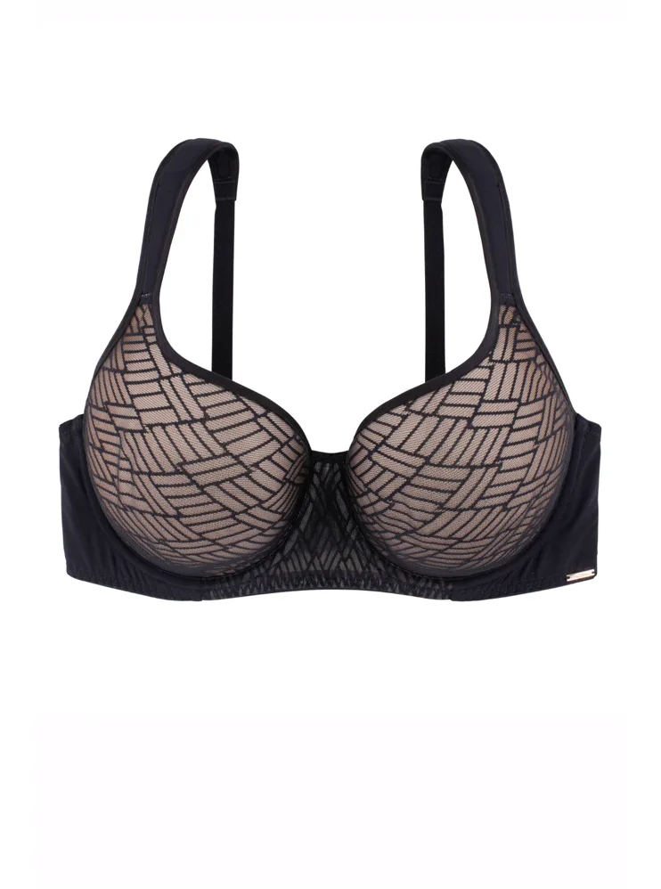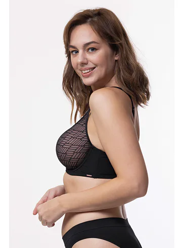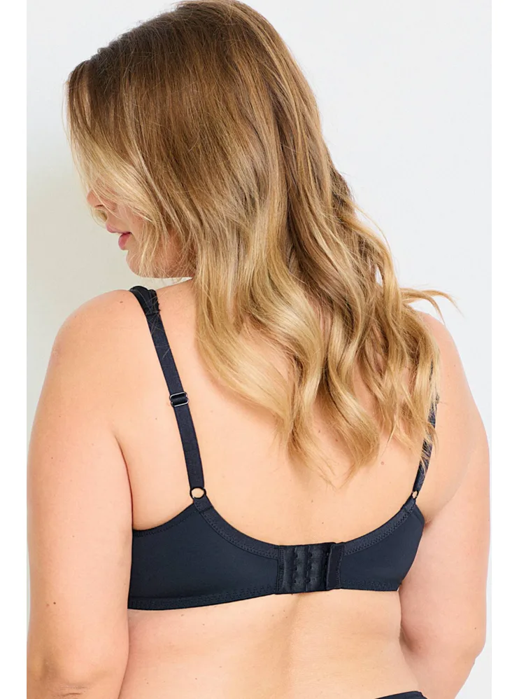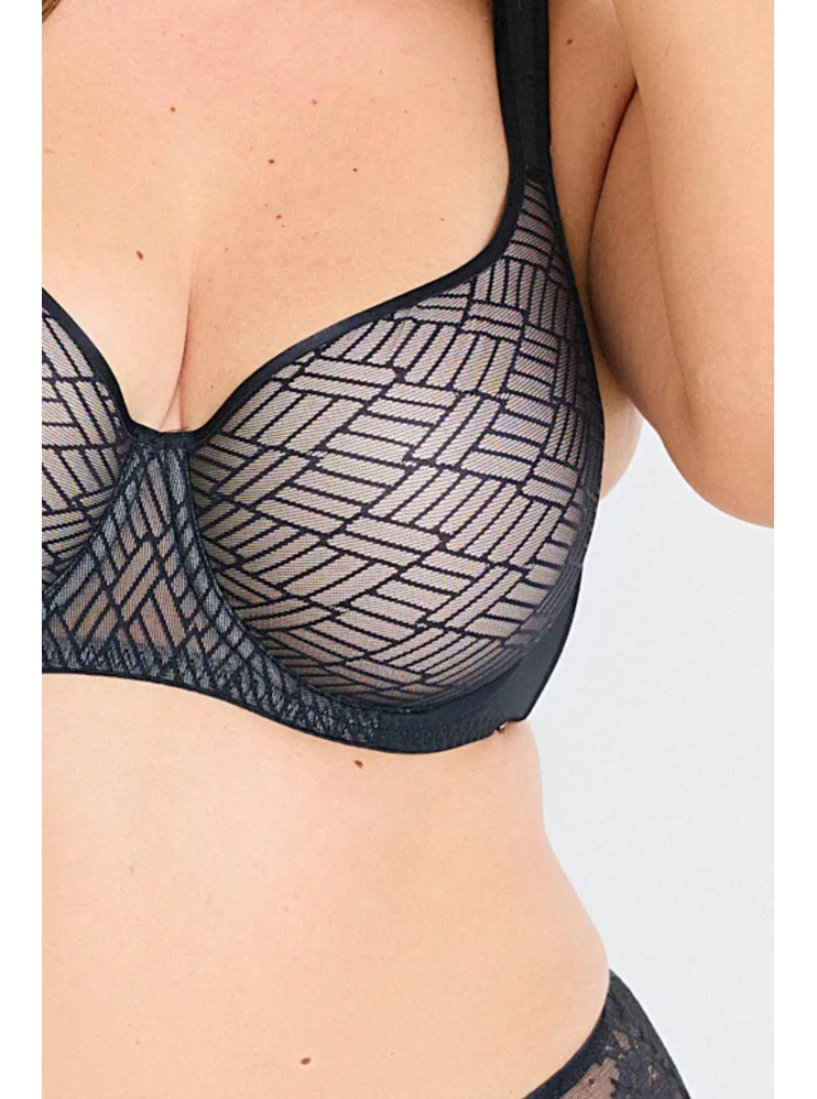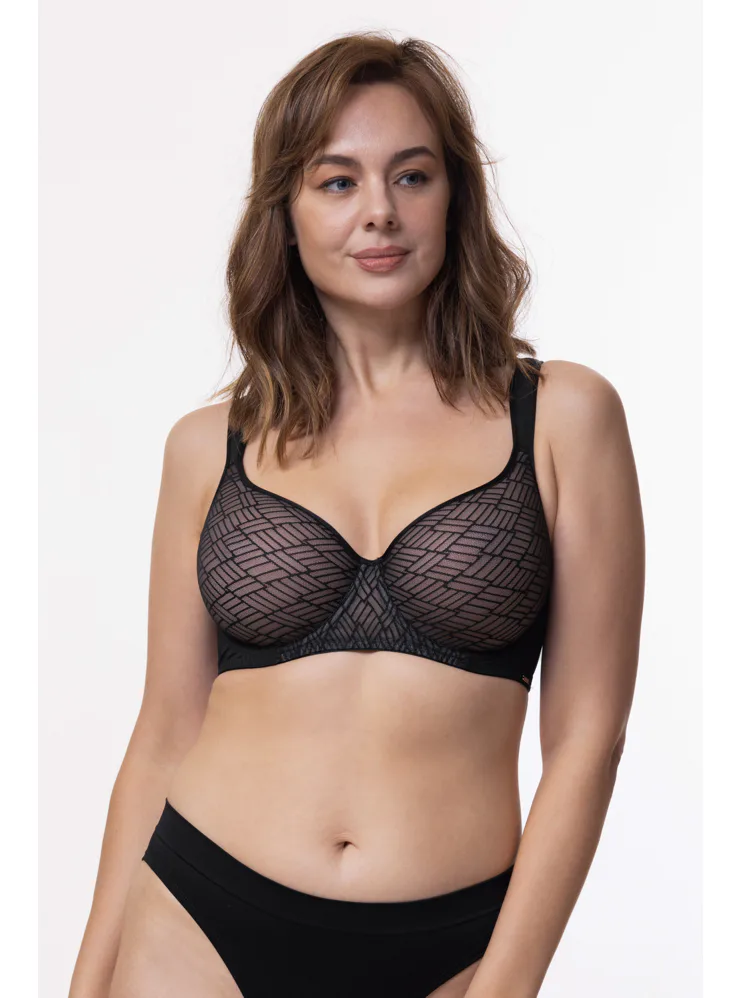 Podprsenka Dorina s vyšším stredom udrží poprsie na svojom mieste, ideálne pre väčšie poprsie. Má mäkké podložené ramienka, ktoré pomáhajú rovnomerne rozložiť váhou pŕs a nikde sa nezarezávajú. Spacer je špeciálny druh látky tvorený dvoma vrstvami jemnej tkaniny, perfektne prilieha k pokožke a zaisťuje maximálny komfort. Podprsenka v čiernej farbe zaujme geometrickým vzorom a zapínanie má vzadu na tri háčiky s tromi polohami stiahnutia. Podprsenku je možné zaobstarať aj v krémovom prevedení.