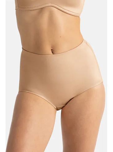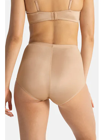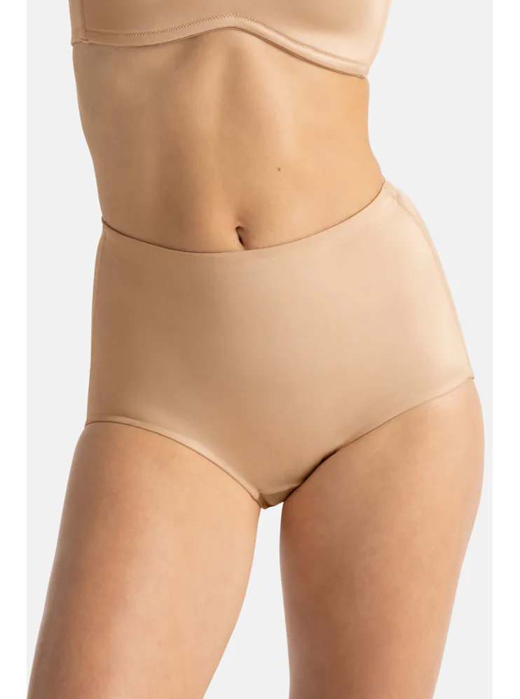 Dámske nohavičky jemne tvarujú pás, brucho a boky. Vyšší strih poskytuje oporu bez nepríjemného zarezávania. Vďaka lesklému materiálu sa po nich oblečenie krásne kĺže. Ideálna voľba pod šaty, sukne aj nohavice. Nohavičky v béžovej farbe vám dodajú sebavedomie a pocit pohodlia.