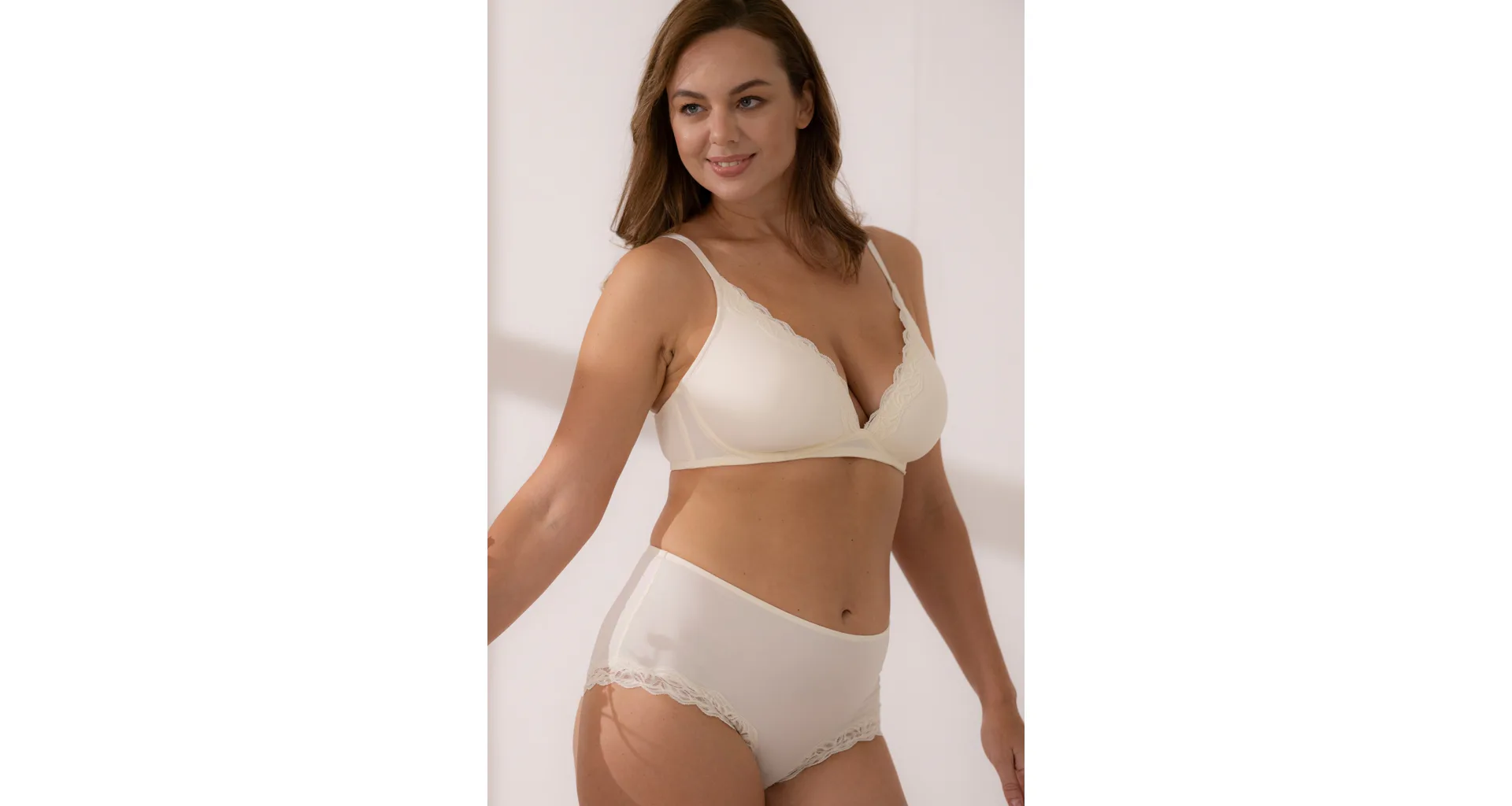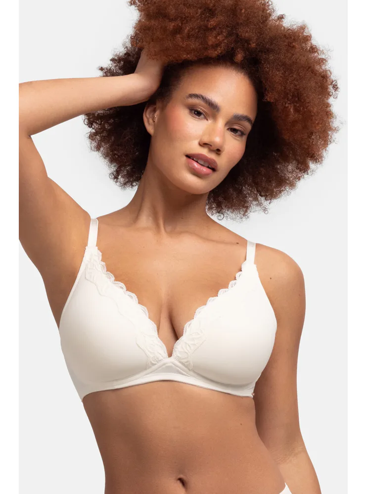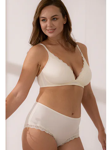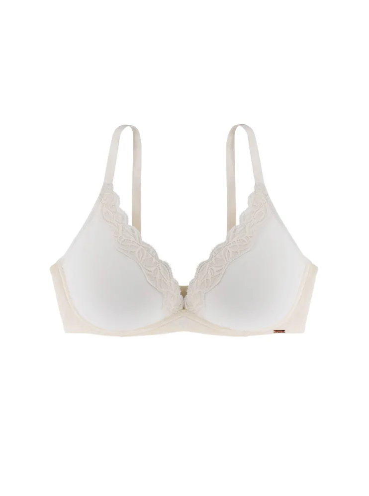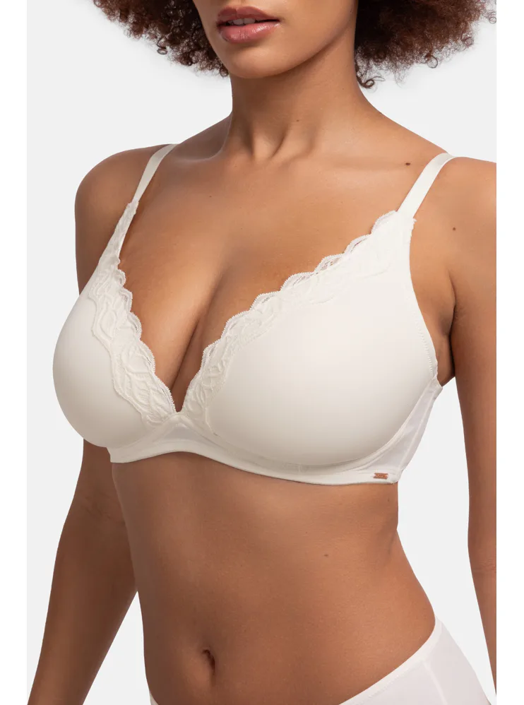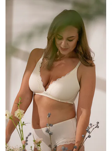 Krémová braletka zaistí prirodzený vzhľad poprsia a dokonale sa prispôsobí vašim krivkám. Poskytne potrebnú podporu a zároveň vám zaručí slobodu počas celého dňa. Vytvára krásny výstrih a dá sa zakúpiť až do veľkosti E. Perfektne sedí a nikde sa nezarezáva