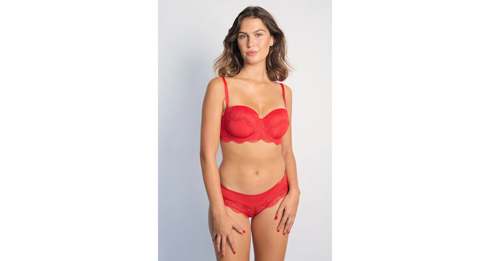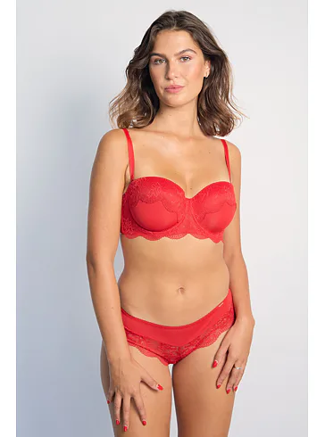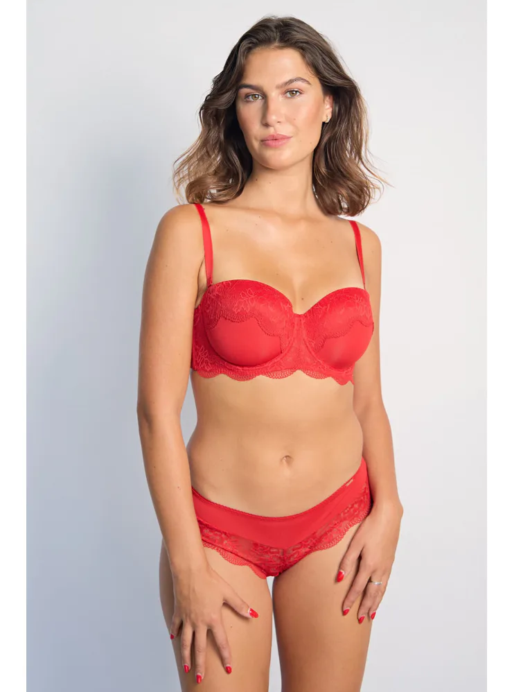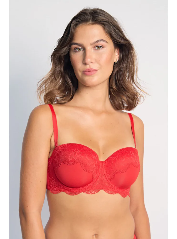 Balkónová podprsenka podčiarkne vašu ženskosť a zároveň zabezpečí maximálne pohodlie. Červená podprsenka s romantickou čipkou vyčaruje rafinovaný dekolt. Doprajte si luxusné pohodlie a zvýraznite svoju krásu s podprsenkou Dorina.