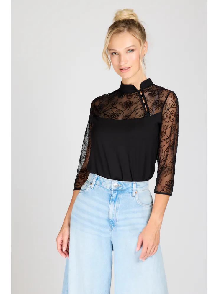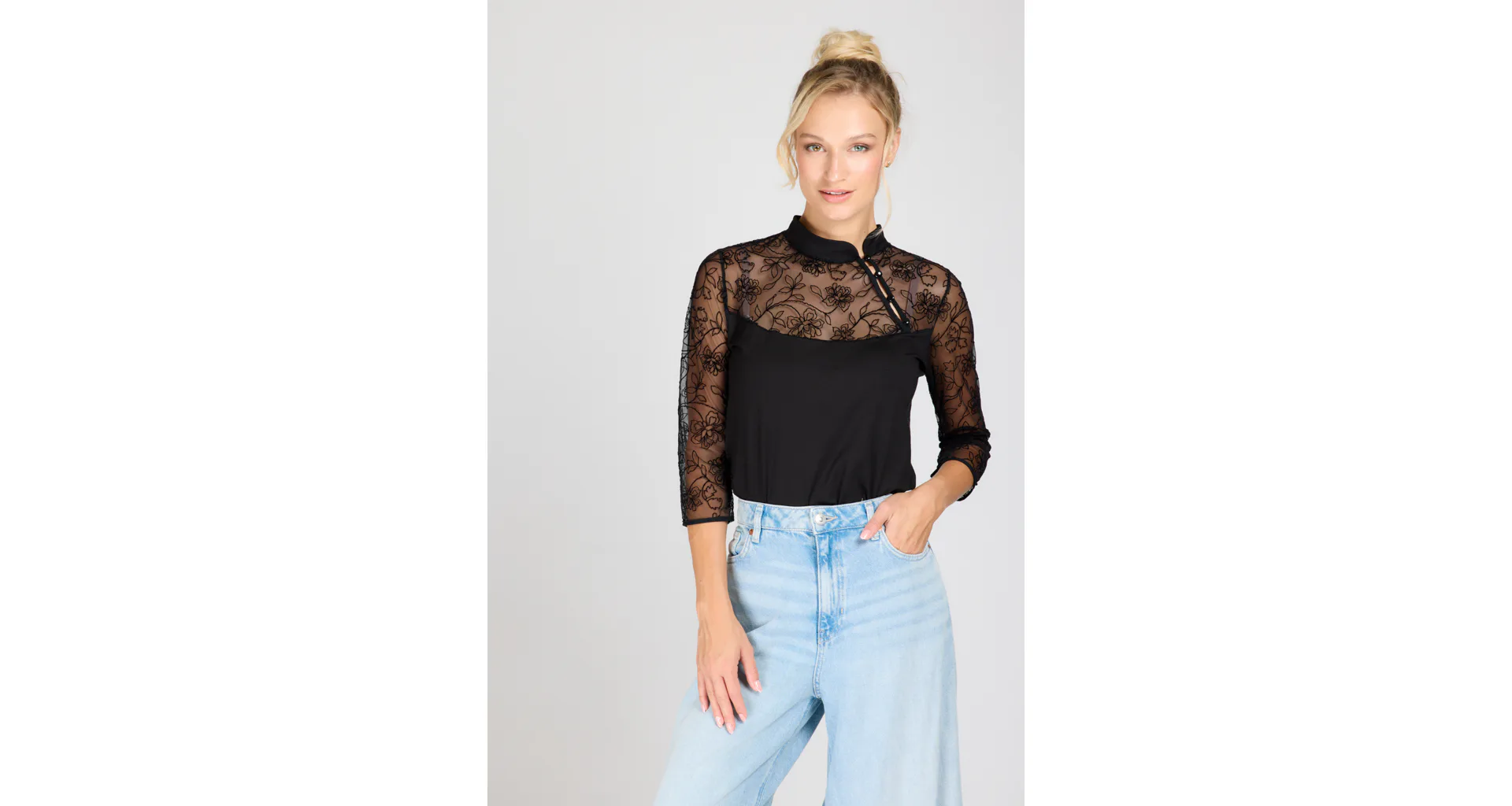 Stojáčik a zapínanie na gombíky dodávajú blúzke nádych japonskej elegancie. Zdobí ju jemná kvetinová čipka, ktorá pôsobí zmyselne a rafinovane. Dámsku blúzku ľahko skombinujete s elegantnými nohavicami, sukňou alebo džínsami. Zaobstarajte si nadčasovú blúzku, ktorá má celoročné využitie.