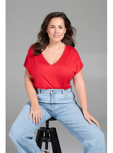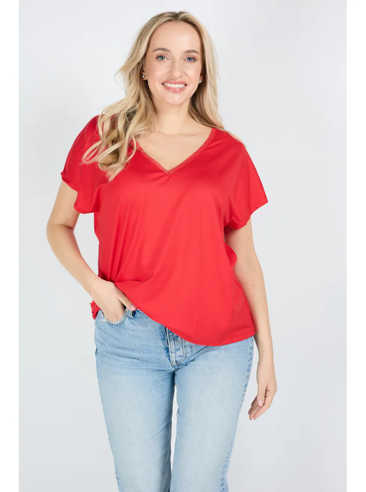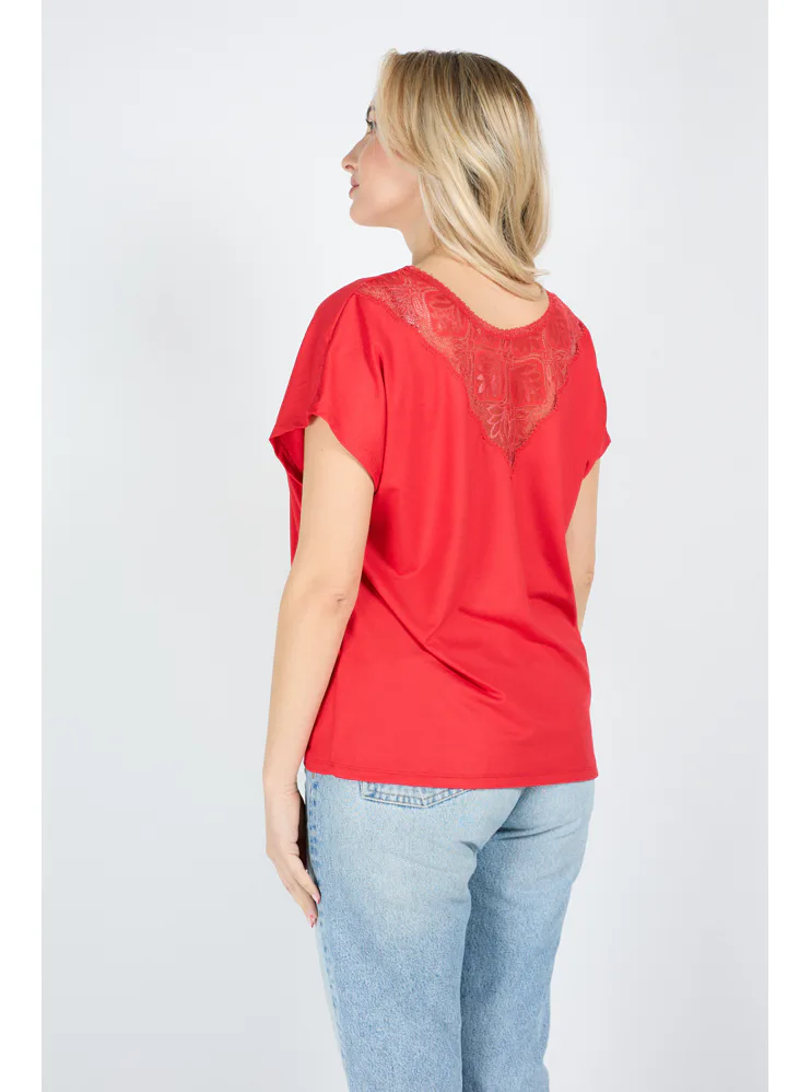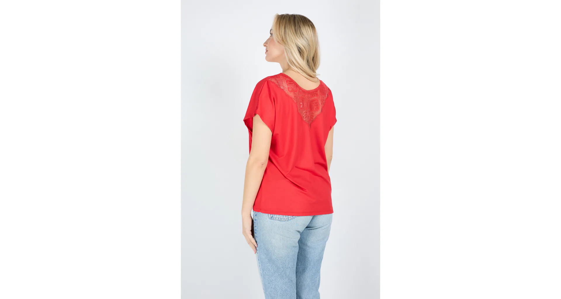 Dámske červené tričko Miriam zaujme čipkovým detailom na chrbte. Tričko má výstrih do písmena V a je vyrobené z viskózy, ktorá vyniká ľahkosťou, jemnosťou a priedušnosťou, má hypoalergénne vlastnosti a ľahko sa udržuje. Dámske tričko znosíte do práce, na rande, do školy či pri stretnutí s priateľmi. Doplňte váš šatník o jedinečný kúsok oblečenia, v ktorom sa budete cítiť pohodlne a atraktívne. Tričko s krátkym rukávom je možné zaobstarať aj v bielej farbe.