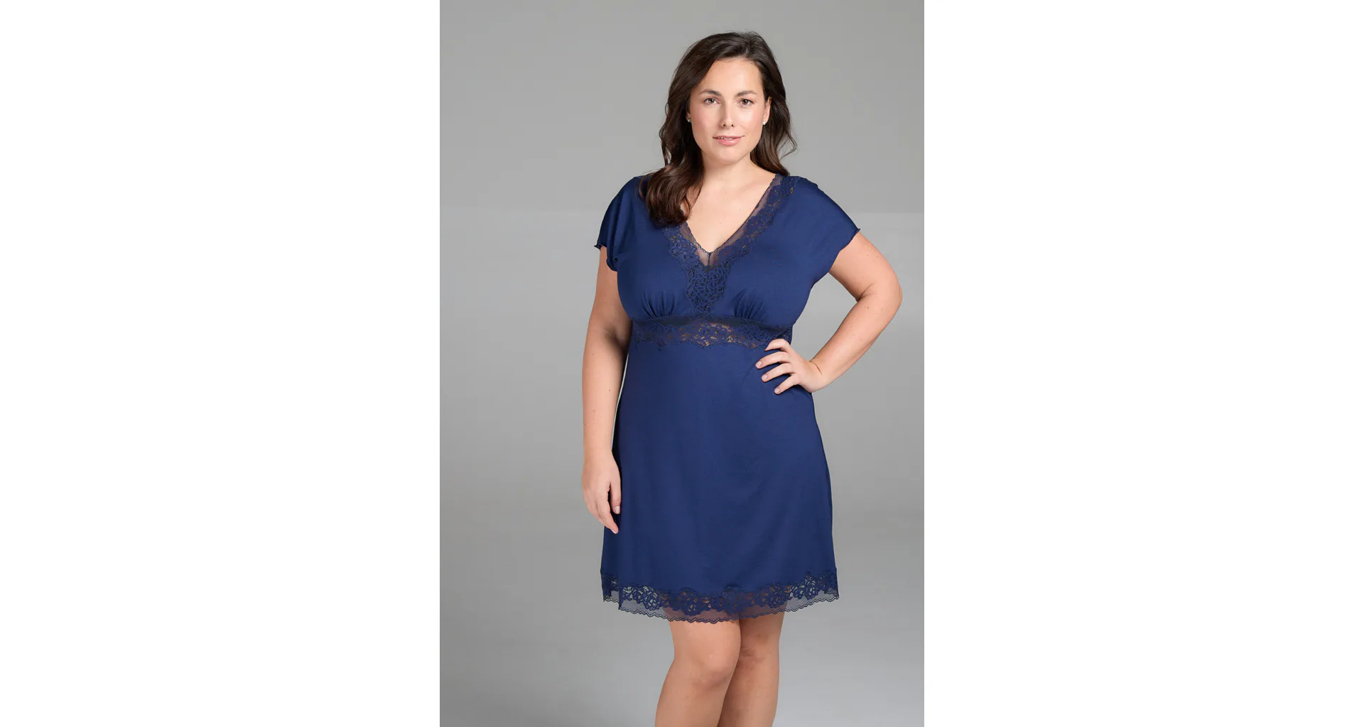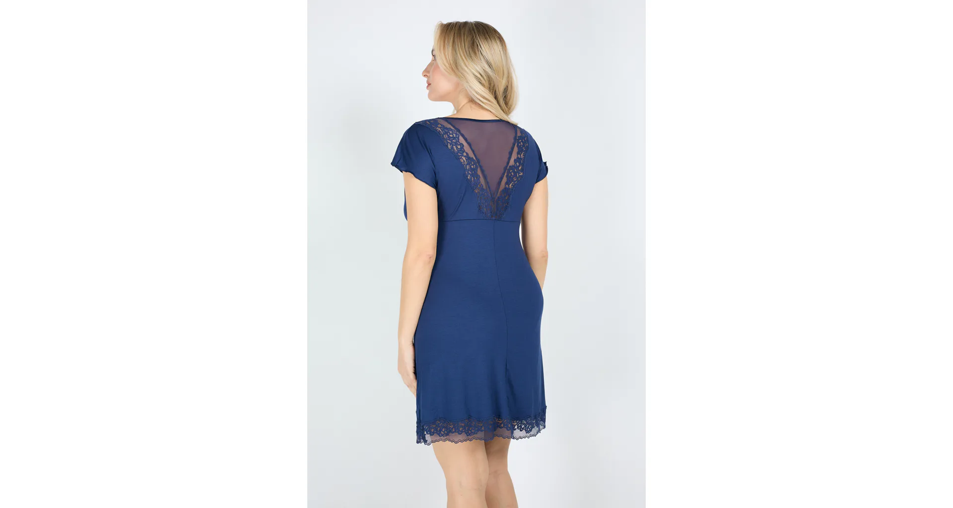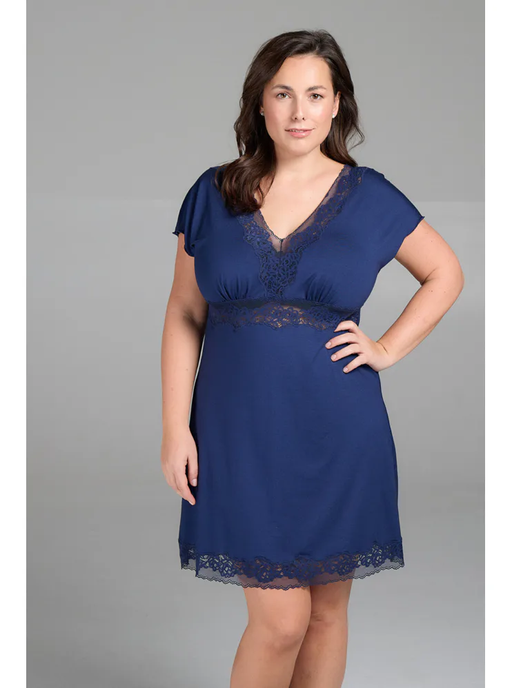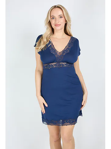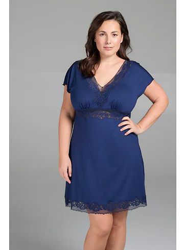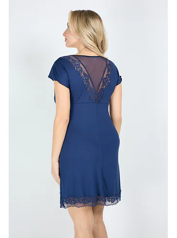 Modrá nočná košeľa s čipkou
