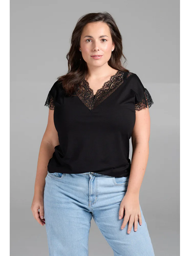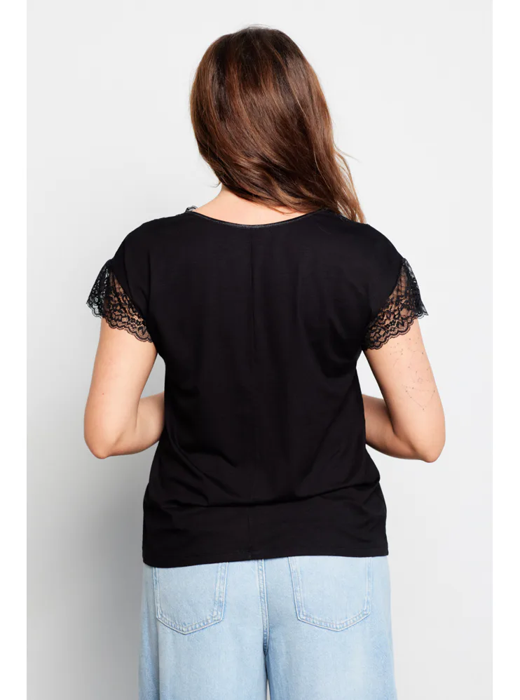 Tričko s krátkym rukávom je vyrobené z príjemnej viskózy, ktorá sa dokonale prispôsobí vášmu telu a zaistí maximálny komfort po celý deň. Čipkované detaily vo výstrihu a na rukávoch dodávajú tričku nádych romantiky a elegancie. Skvele sa kombinuje s elegantnými nohavicami, džínsami alebo sukňami. Kúpte si dámske tričko, ktoré predstavuje kombináciu elegancie a pohodlia.