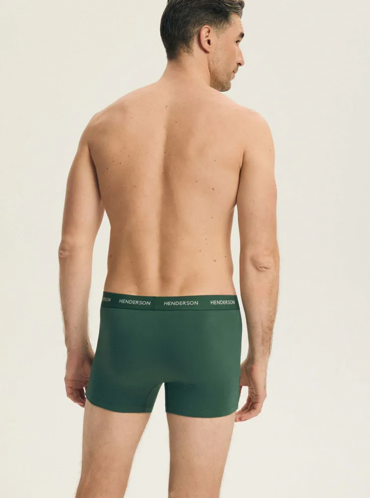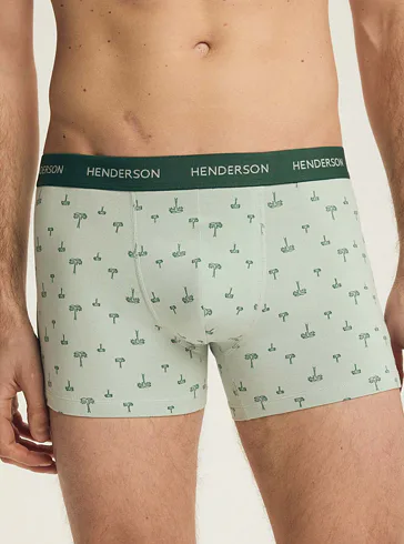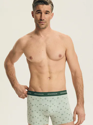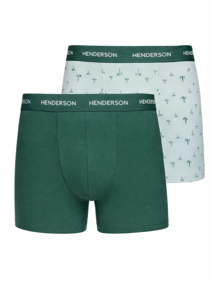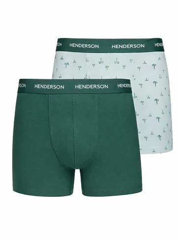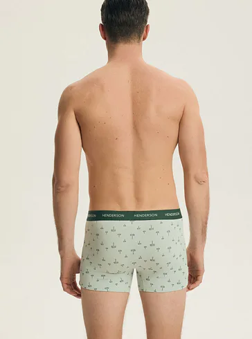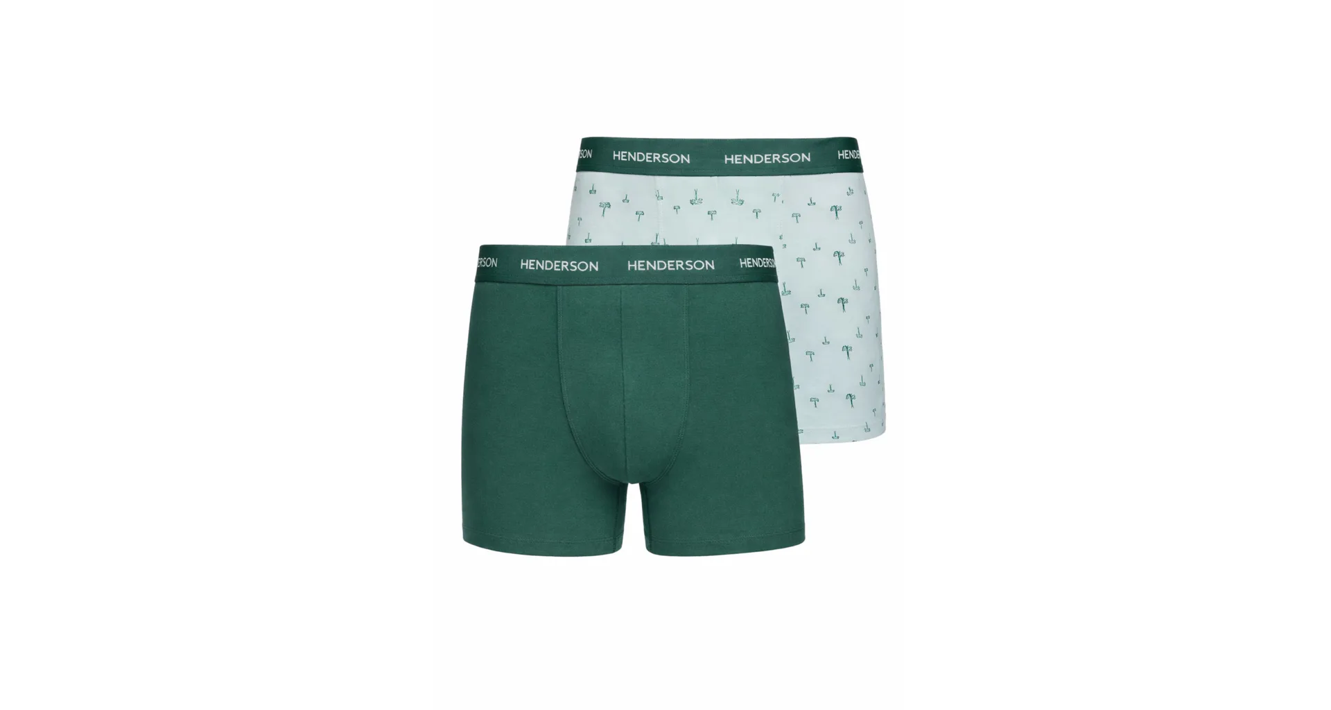 V balení sa nachádzajú dvoje pánske boxerky, ktoré kombinujú komfort a štýl. Boxerky zaobstaráte v trendy tmavo zelenej farbe a vo svetlo zelenej farbe s motívom palmičiek. Majú dlhšiu nohavičku a praktickú gumu v páse. Vyrobené sú z mäkkej bavlny s prímesou elastanu.