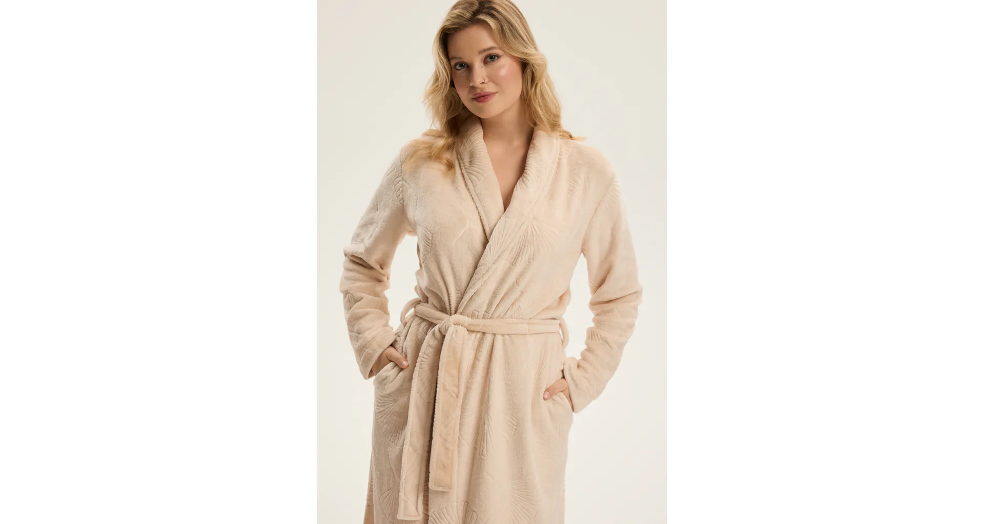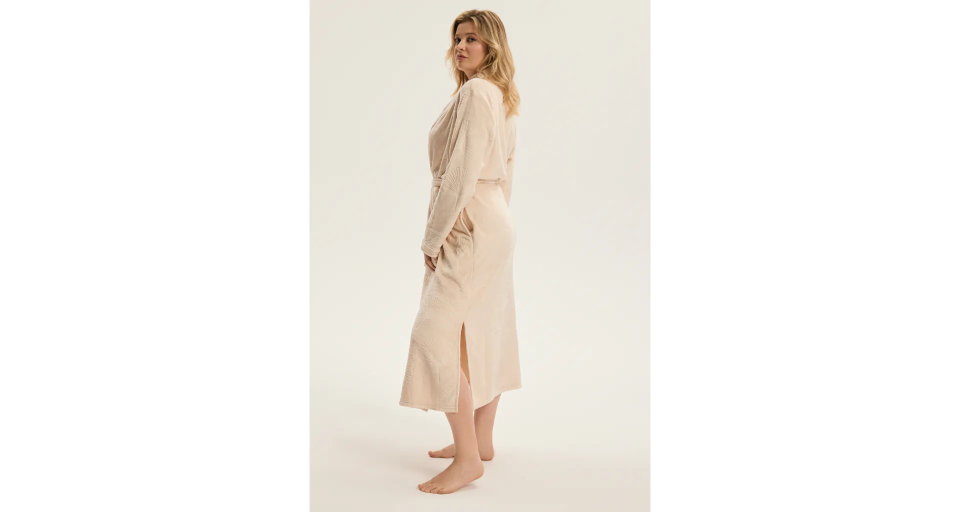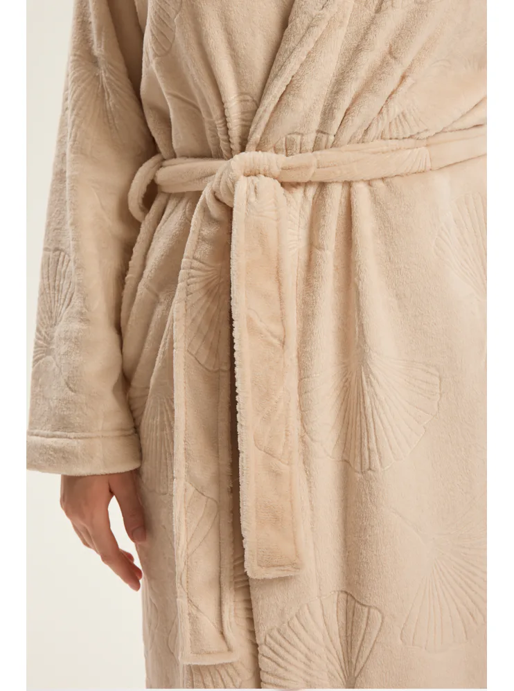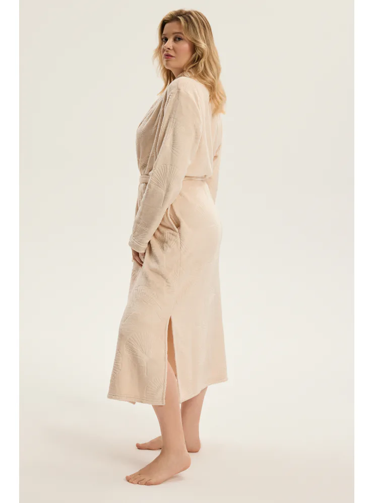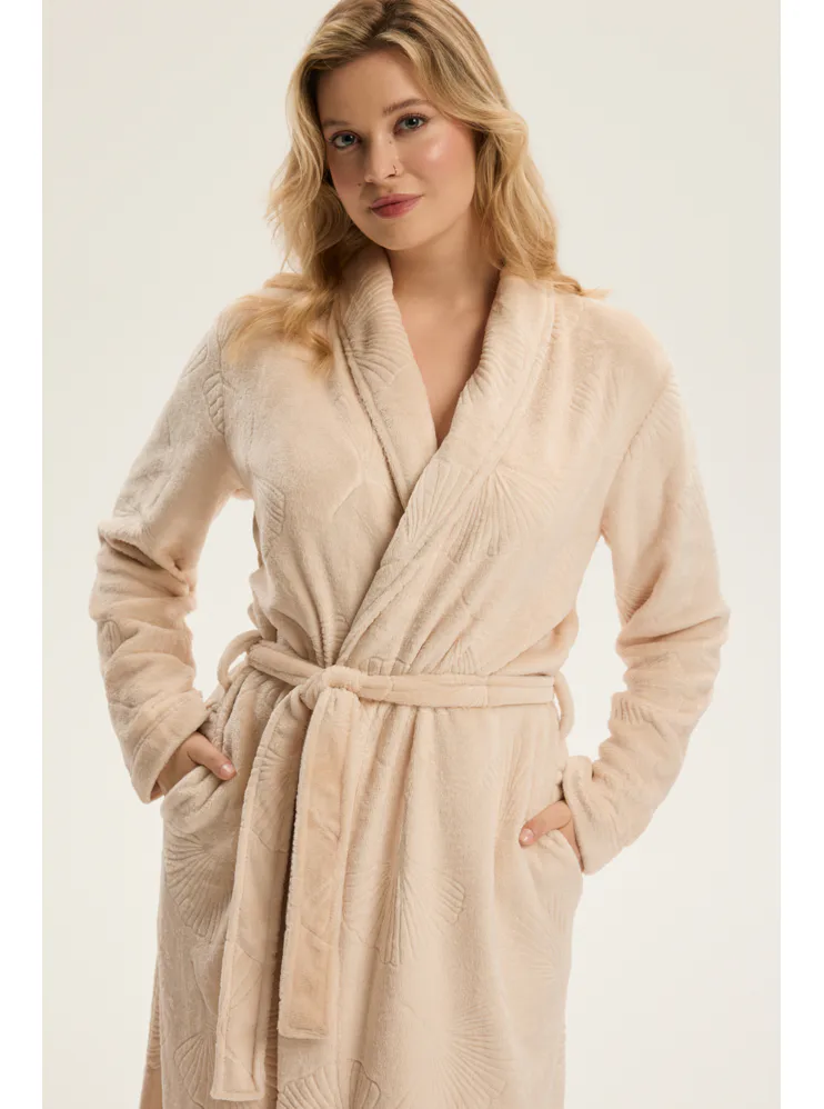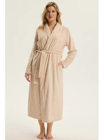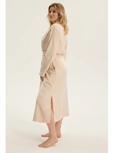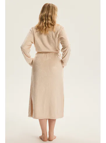 Dámsky dlhý župan so vzorom v béžovej farbe