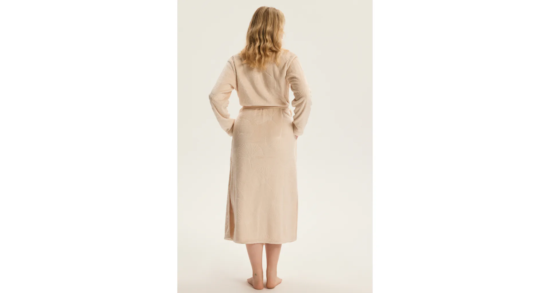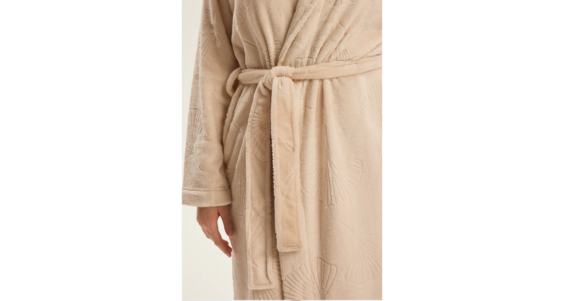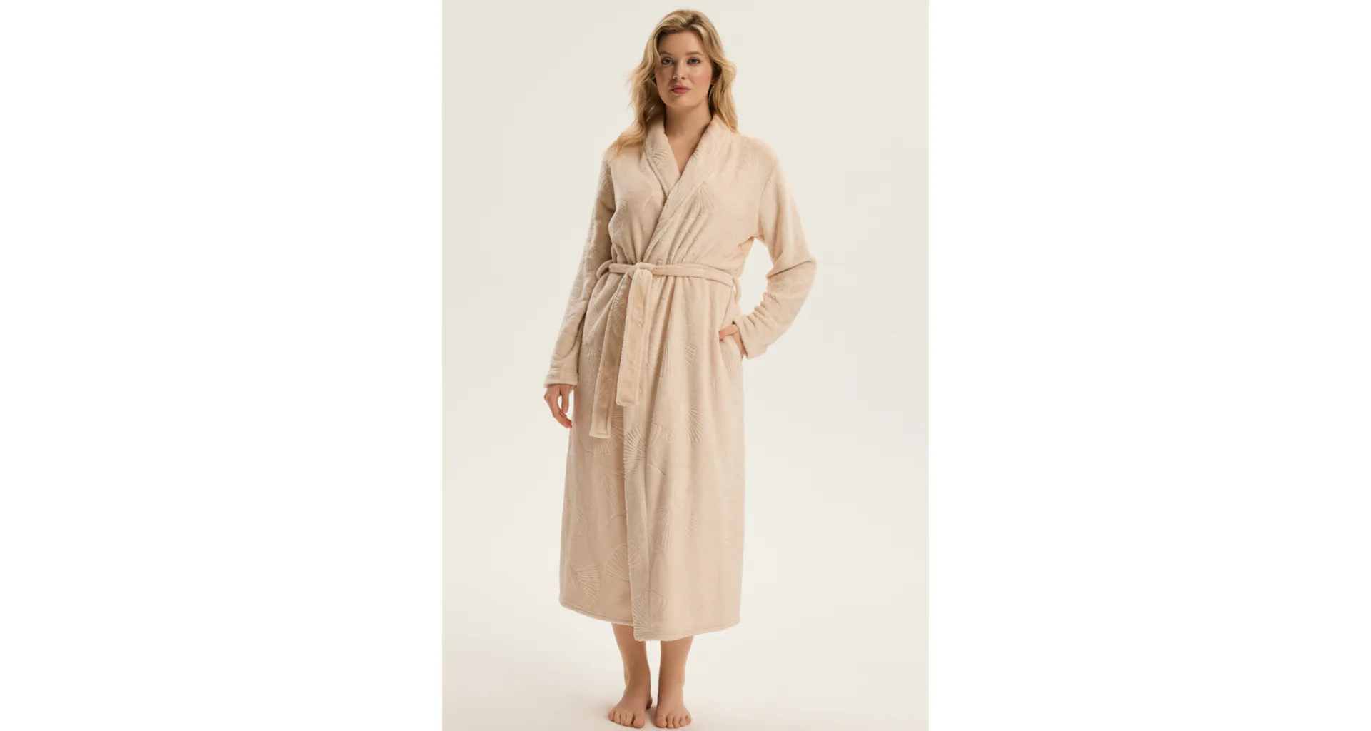 Doprajte si pocit luxusu a pohodlia každý deň. Elegantný župan zaujme jemným listovým vzorom.