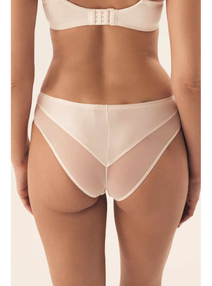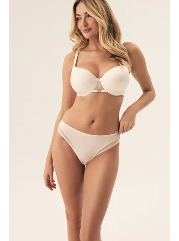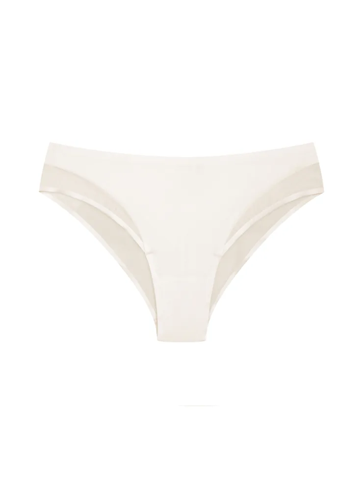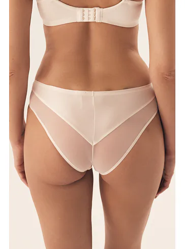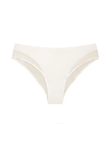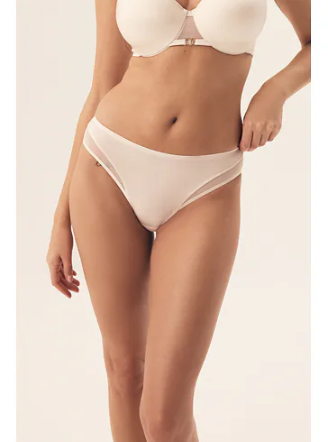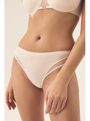 Krémové nohavičky klasického strihu nikdy nevyjdú z módy a predstavujú dokonalú kombináciu pohodlia a elegancie. Poskytujú plné krytie zadočku a bokov, nikde neškrtia a nezarezávajú sa. Prednú a zadnú stranu nohavičiek zdobí jemný tyl. Priedušný bavlnený klin je šetrný k pokožke, absorbuje vlhkosť a eliminuje zápach. Zaobstarajte si k nohavičkám podprsenku z rovnakej kolekcie a získajte tak kompletný set.