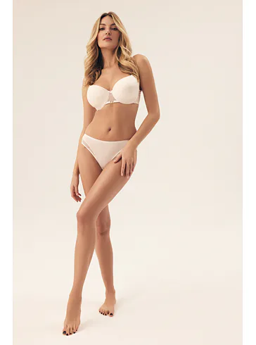 Krémová podprsenka s vystuženými košíčkami poskytuje pevnú oporu a maximálny komfort pri celodennom nosení. potreby a zapínanie sa nachádza vzadu na háčiky. kúpiť až do veľkosti F. Urobte si radosť krásnou spodnou bielizňou.