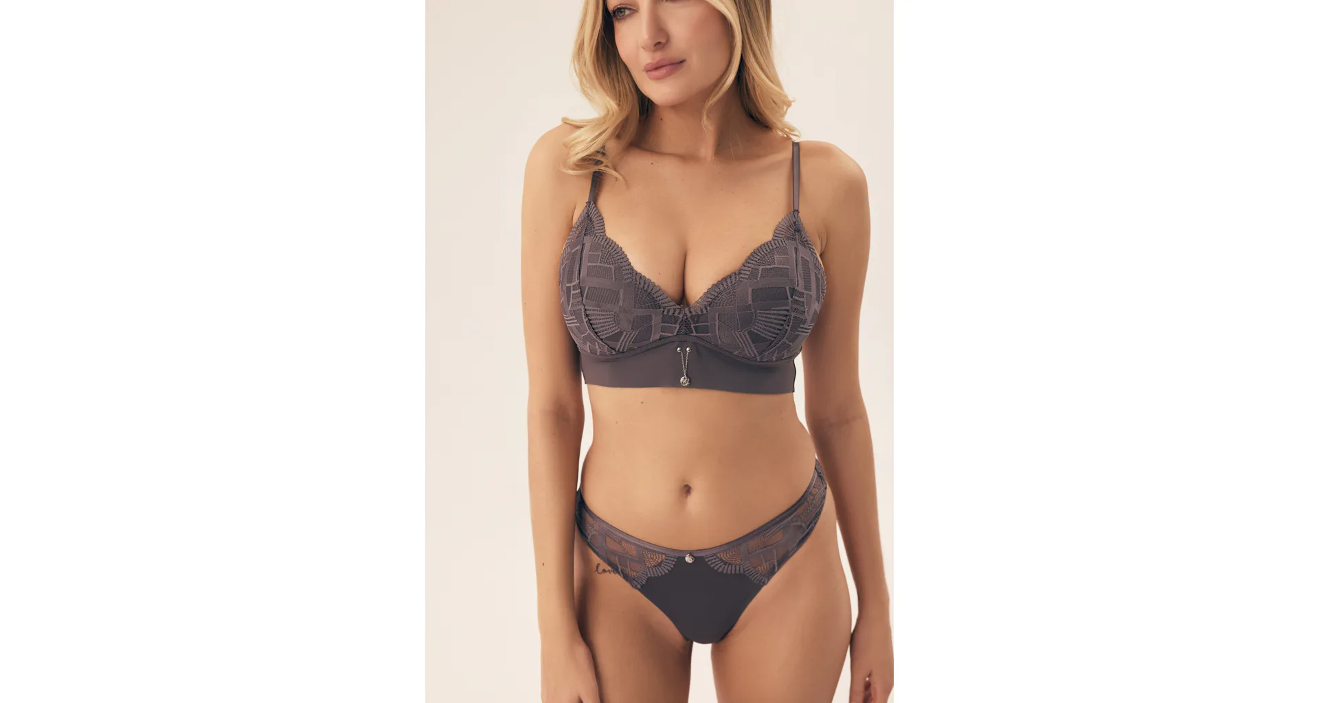Bralette Intro sa dokonale prispôsobí vášmu pohybu a podčiarkne prirodzený tvar poprsia. Môžete tiež experimentovať s braletkou a nechať ju štýlovo vykuknúť spod trička alebo saka. Košíky podprsenky sú zdobené jemnou čipkou. Na prednej strane podprsenky je štýlový prívesok. Samozrejmosťou sú nastaviteľné ramienka a praktické zapínanie na háčiky vzadu. Či už ju budete nosiť doma, v práci alebo pri voľnočasových aktivitách, stane sa vaším obľúbeným kúskom na každý deň.