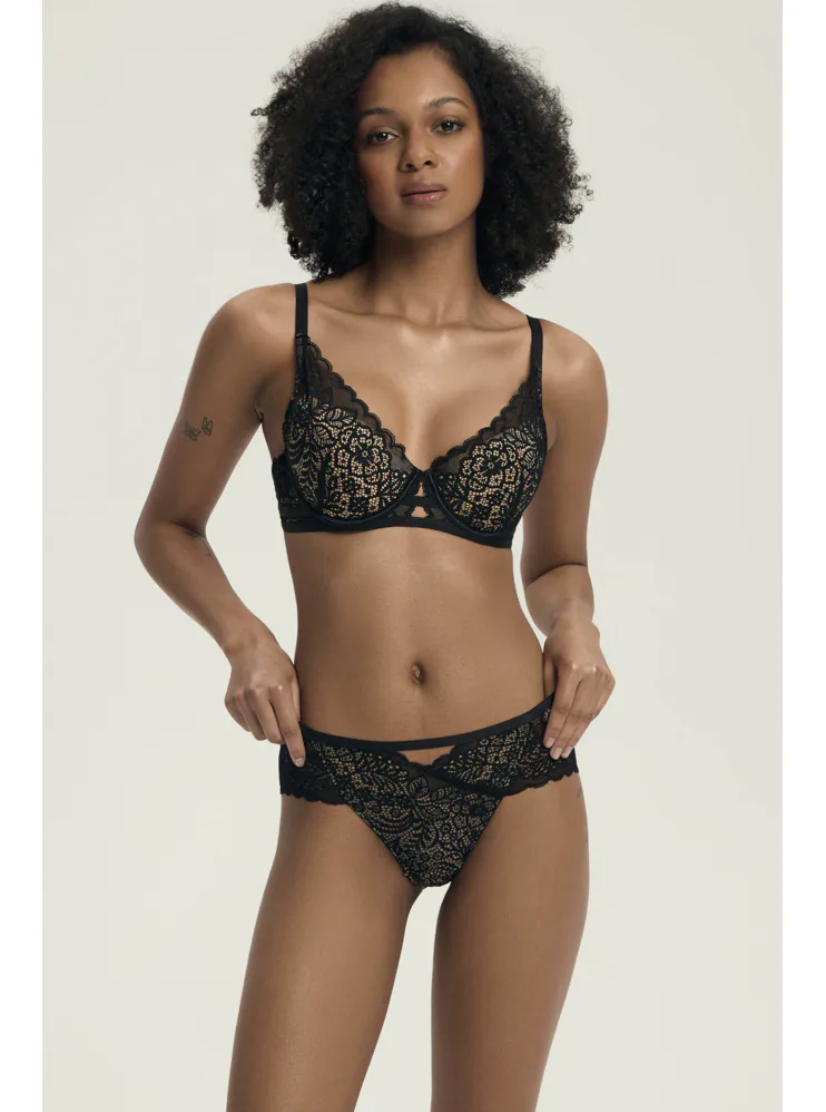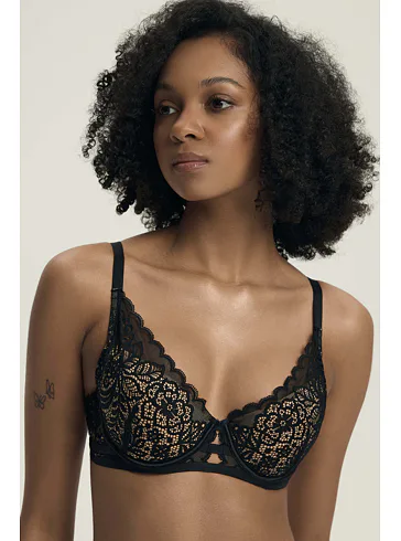 Zväčšite opticky svoje poprsie vo zvodnej push-up podprsenke. Vytvorí plný dekolt, poskytne potrebnú oporu a zaručí maximálny komfort pri každodennom nosení. Telový košíček je pokrytý sexy čiernou čipkou a spodnú časť zdobia dve jemné stuhy.