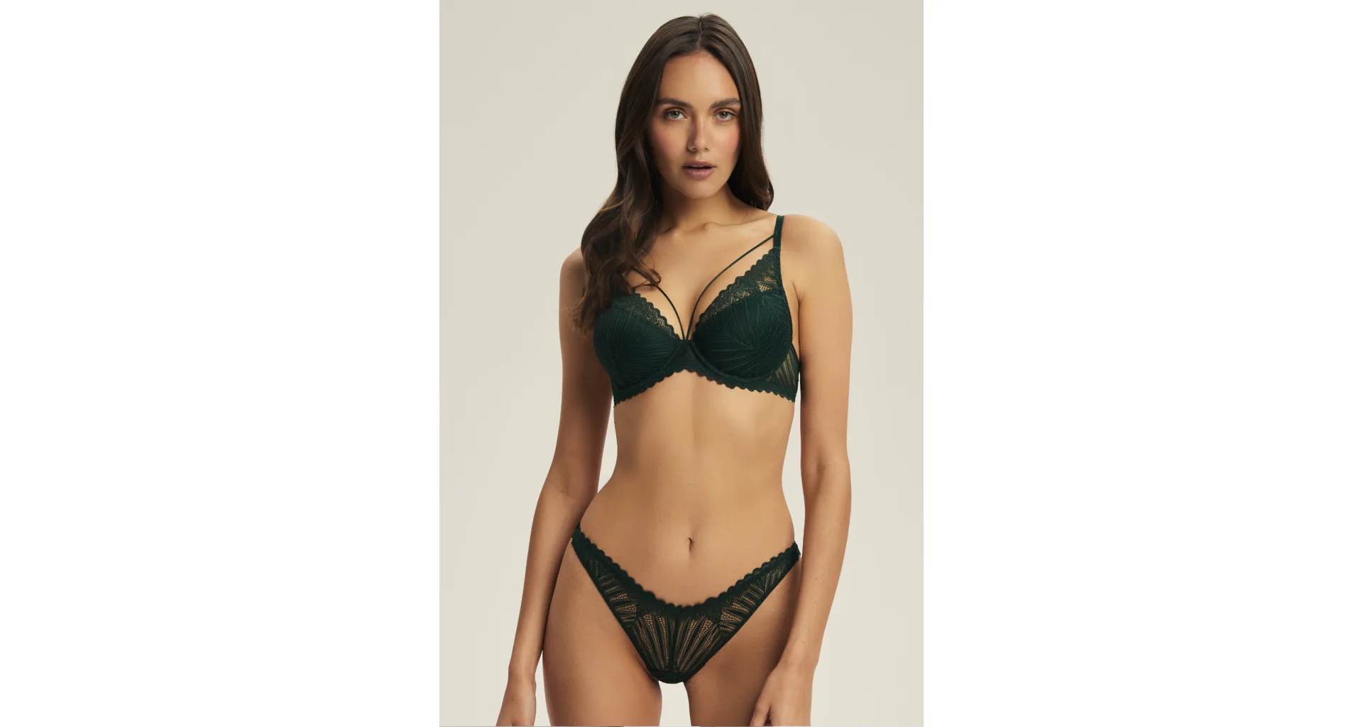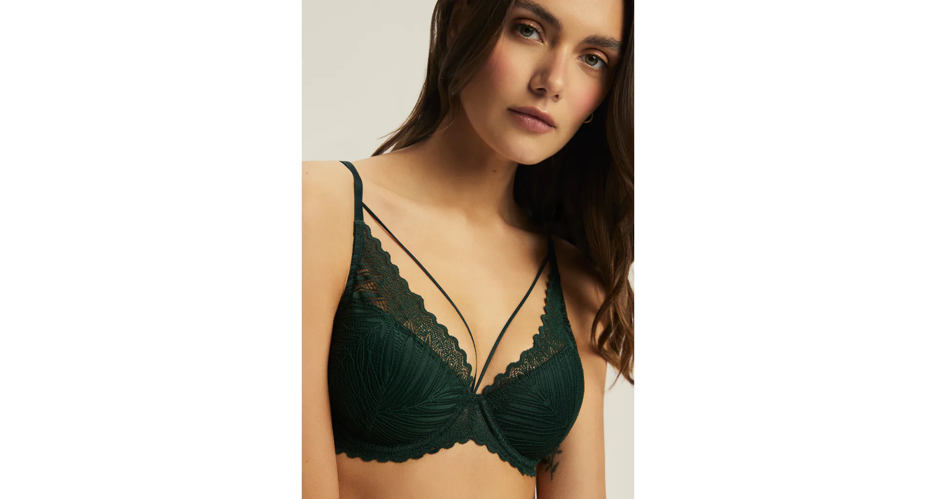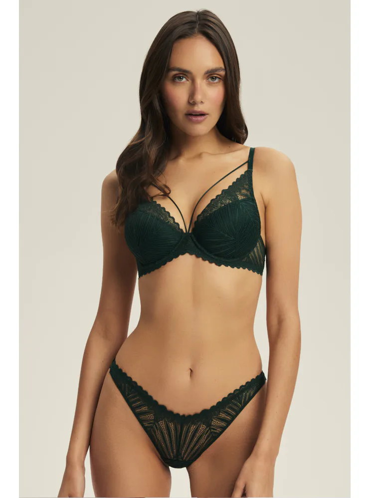 Podprsenka push-up s čipkou v zelenej farbe